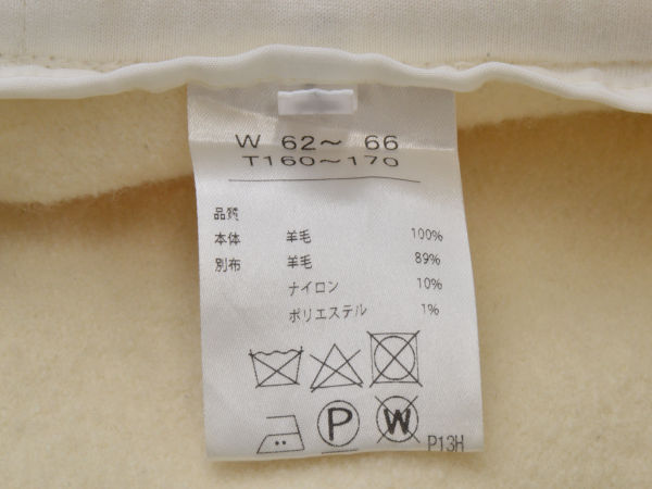 | (本体)羊毛100% (別布)羊毛89% ナイロン10% ポリエステル1% | |||||||||||