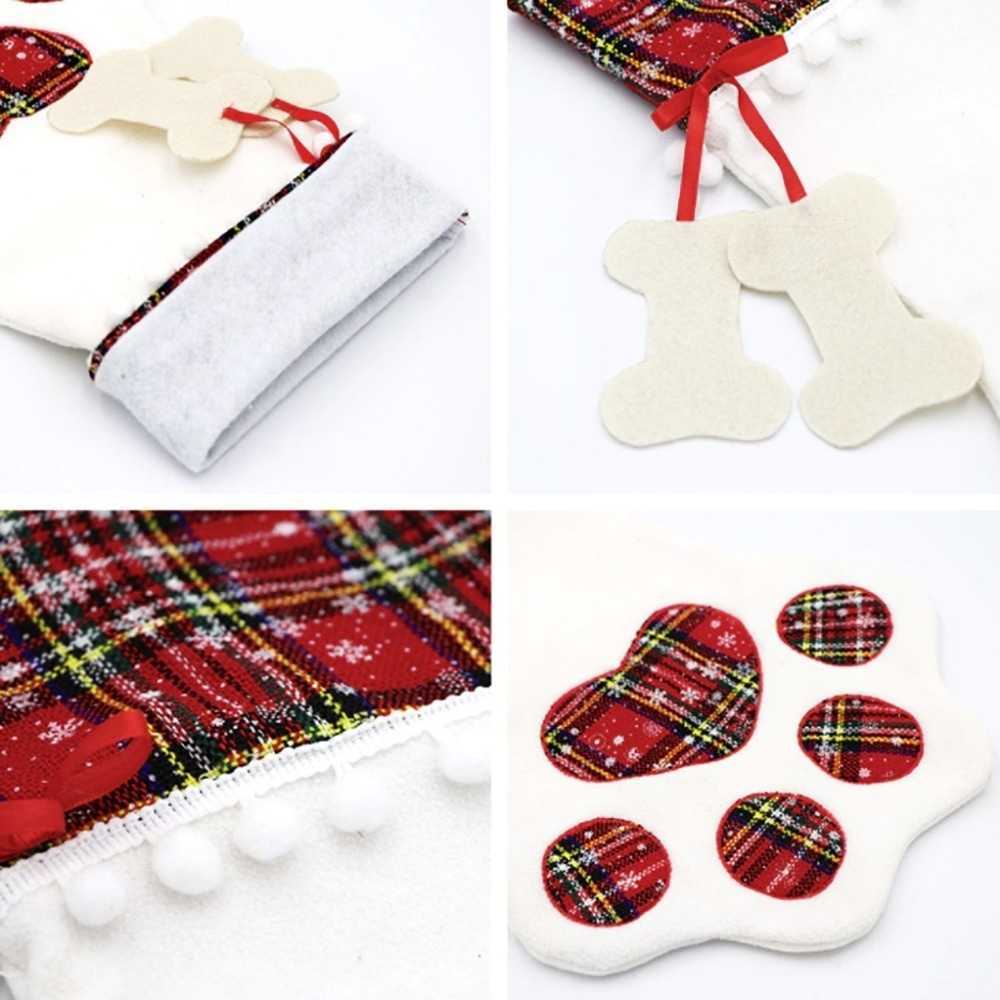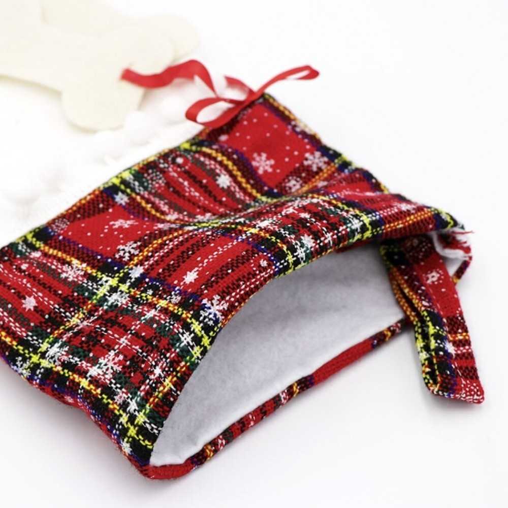 ツリーにきらめきと楽しさを添えてくれる猫の靴下型のプレゼント、お菓子入れです
