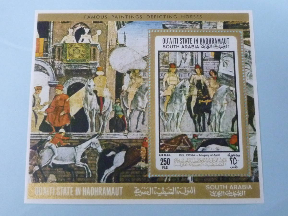 21LA P №34 アデン(HADHRAMAUT)切手 1967年 MI#164 絵画 有目打 小型シート 未使用NH・VF ※説明欄必読