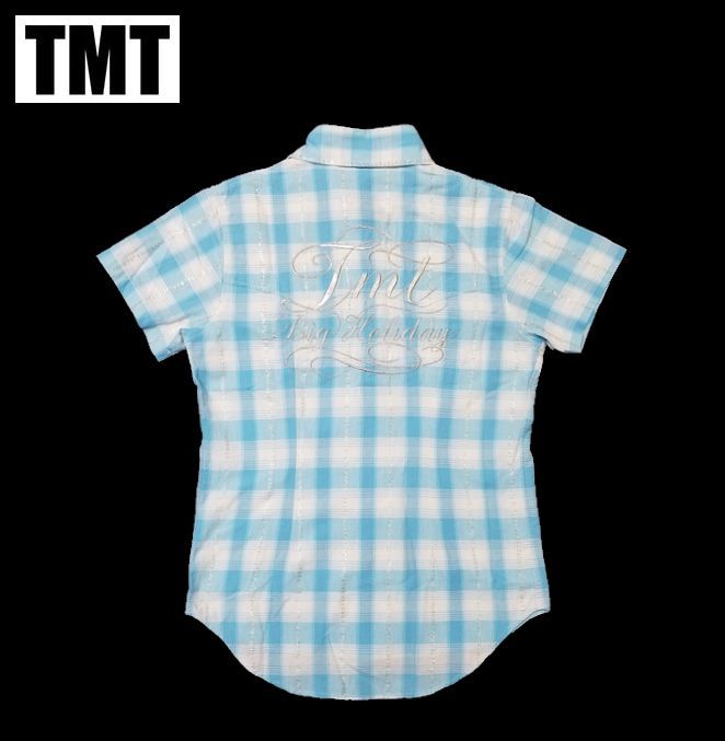 TMT BIG HOLIDAY 刺繍入り 半袖 ウエスタンチェックシャツ (S) スカイブルー
