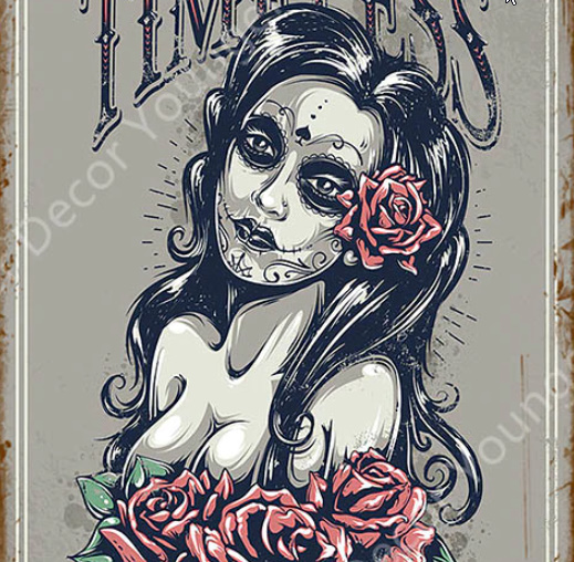 y149 ブリキ看板  レトロ メタル サイン ピンナップ スケルトン タトゥー ヴィンテージ 装飾 アート インテリア