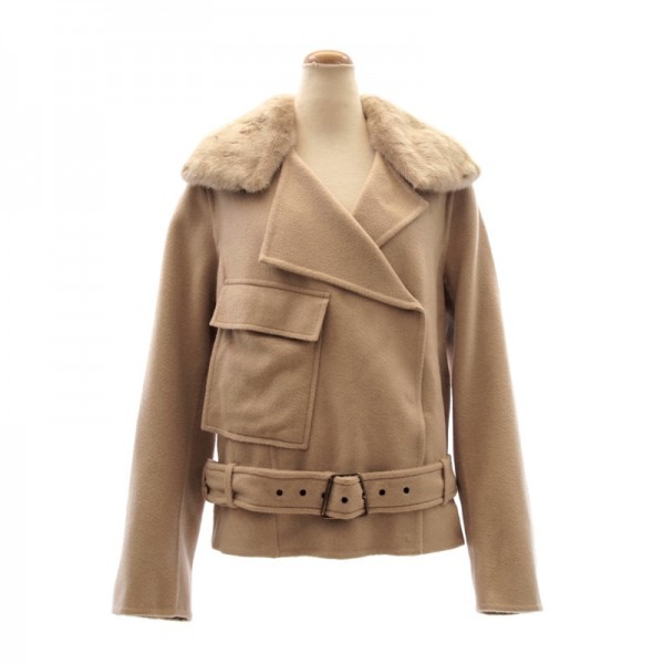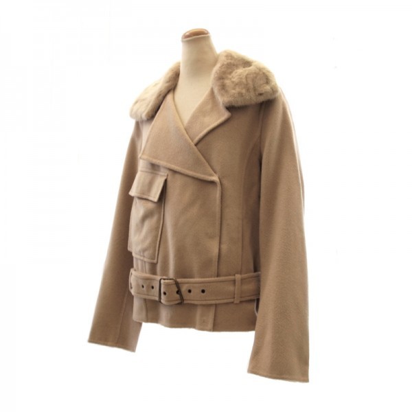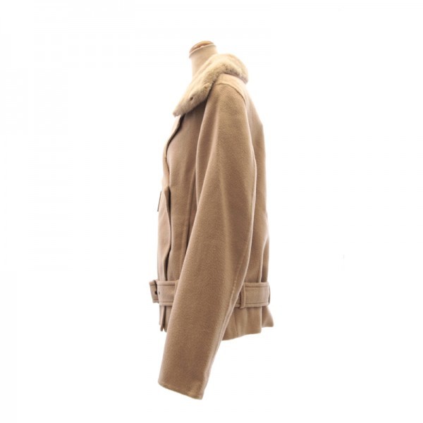 高級感漂うキャメル100%ジャケットです。暖かく柔らかで上質な着心地の一枚。襟元には美しいミンクファーが施され、華やかな雰囲気が加えられています。ゆったりとしたサイズ感が心地よくリラックスしてご着用頂けます。ウエストにはベルトがセットされ、素敵なアクセントとなっています。最高級のマテリアルで出来た贅沢な一着です。