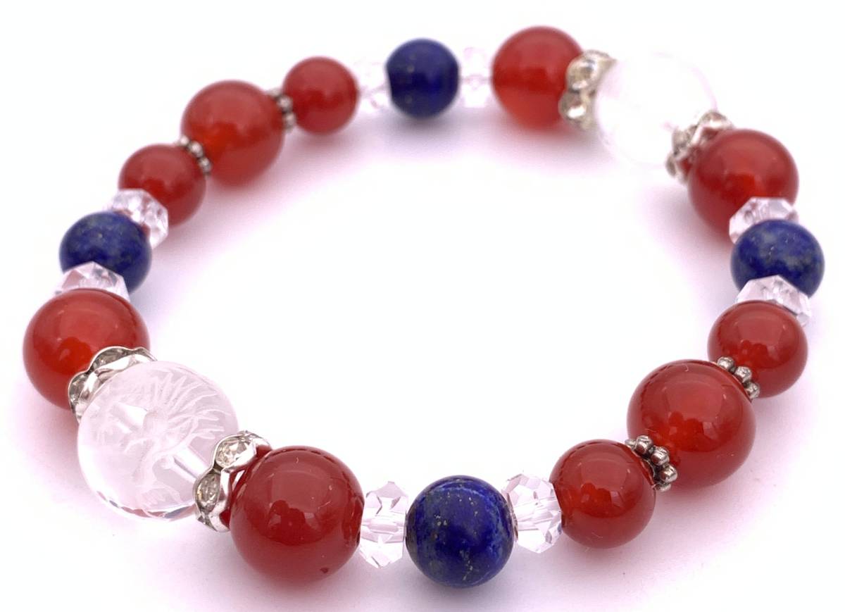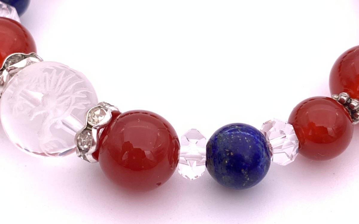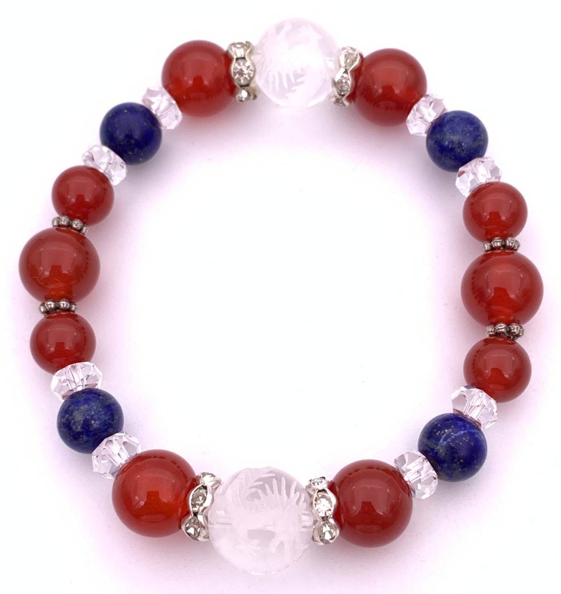天然石彫り水晶青龍12mm玉&赤メノウ&ラピスラズリのブレスレット