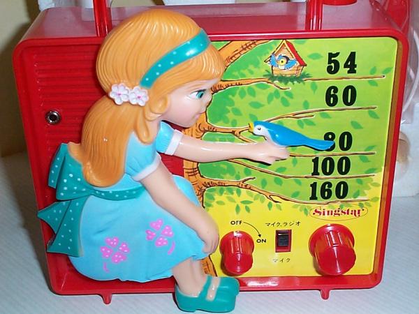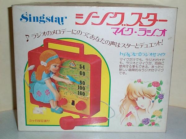 未使用品です。ワグナー シングスターマイクラジオです。ラジオのメロデーにのつてあなたの声はスターとデュエット!トリプルプレーのラジオ付きマイク マイクだけでもラジオだけでもラジオとマイクが、同時に使用できる、まつたく新しい画期的なラジオ付きマイクです。・6石高感度ラジオ・コンデンサーマイク使用と印刷されています。9V電池1本付き(1本使用)ですが電池のみありません。電池は古くなった為処分されたのだと思います。本体、付属品の欠品(電池以外)ありません。電池を入れ可動チェクしました。ラジオ、マイク部分可動しました。ラジオははAM専用です。本体の向かって右側のダイヤル(ツマミ)部分を回すと女の子の左手の青い鳥がとまっている手の部分が上下に動きます。左手がラジオの選局の針の役目をしています。本体サイズは約17.5㎝(取っ手部分含む)×18㎝×7.2㎝(厚さ、表面女の子部分、マイクホルダー部分含む)位です。箱の状態は汚れ、ツブレ、キズ、フタ側面に1ヵ所サケがあります。以上判るだけ書きましたが写真、質問等で判断お願い致します。落札後はノークレーム、ノーリターンでお願い致します。発送は ゆうパックの(元払いと着払い)のみです。ゆうパック〔送料〕元払い(先払い)、着払いのいずれか選べます。配達日、時間の指定ができます。午前中/午後(1):12~14時頃(2):14時~16時頃(3):16時~18時頃(4):18時~20時頃(5):19時~21時頃