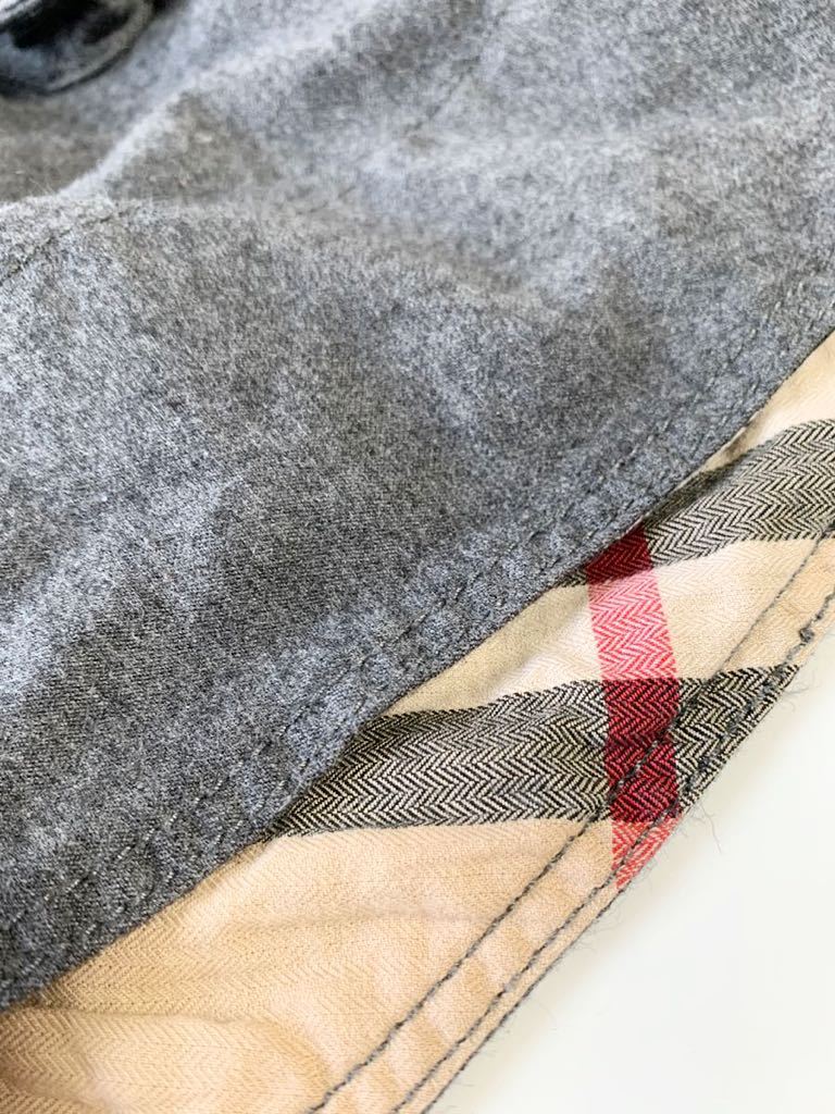 ボタン、ファスナー共にバーバリーのロゴが入るオリジナルパーツ。
