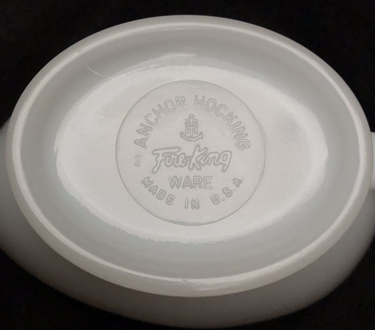刻印は、1960年~だと思います。ANCHOR HOCKING・アンカーマーク・Fire-King・WARE・MADE IN U.S.A のマークがあります。