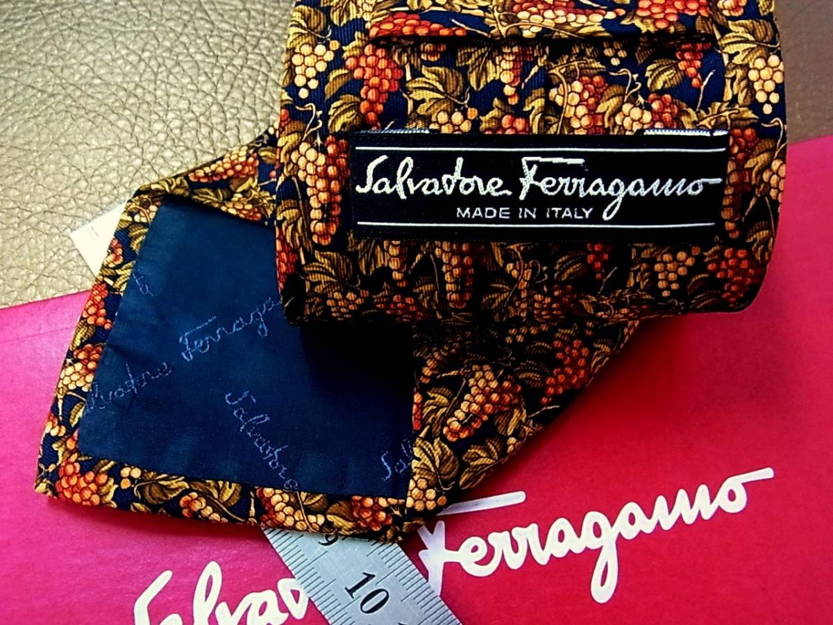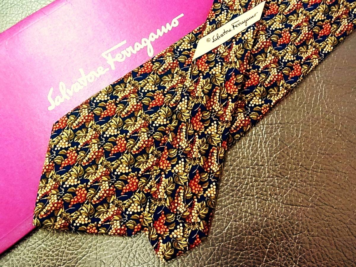 №R1439♪良品 ♪フェラガモ【葡萄・ブドウ・フルーツ・果物】ネクタイ★