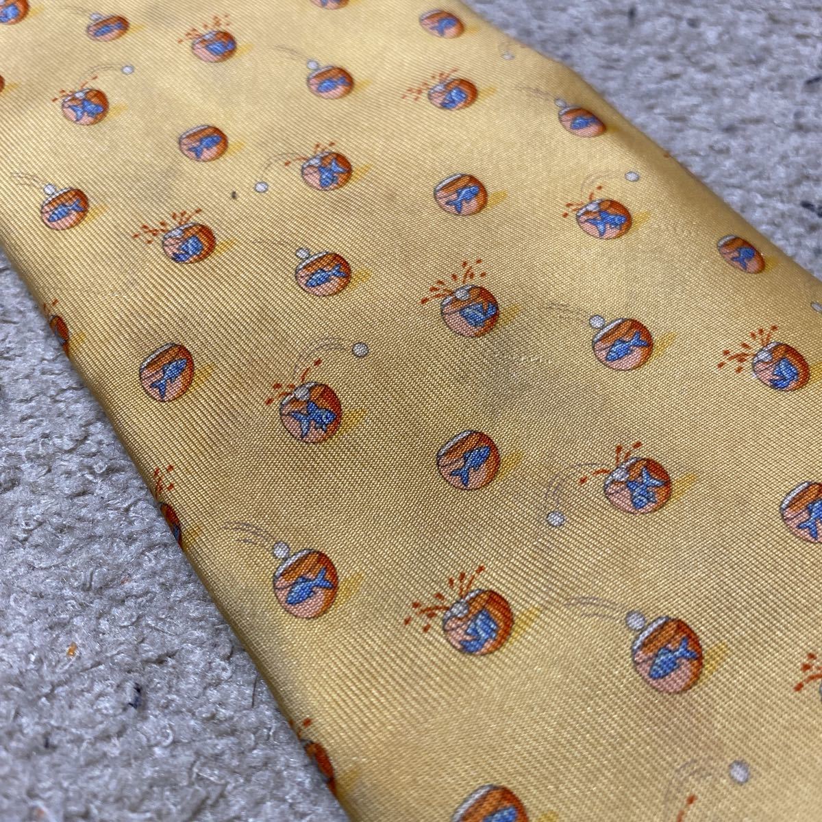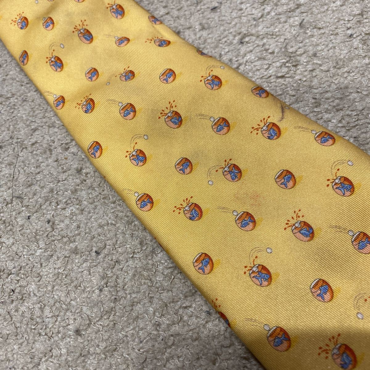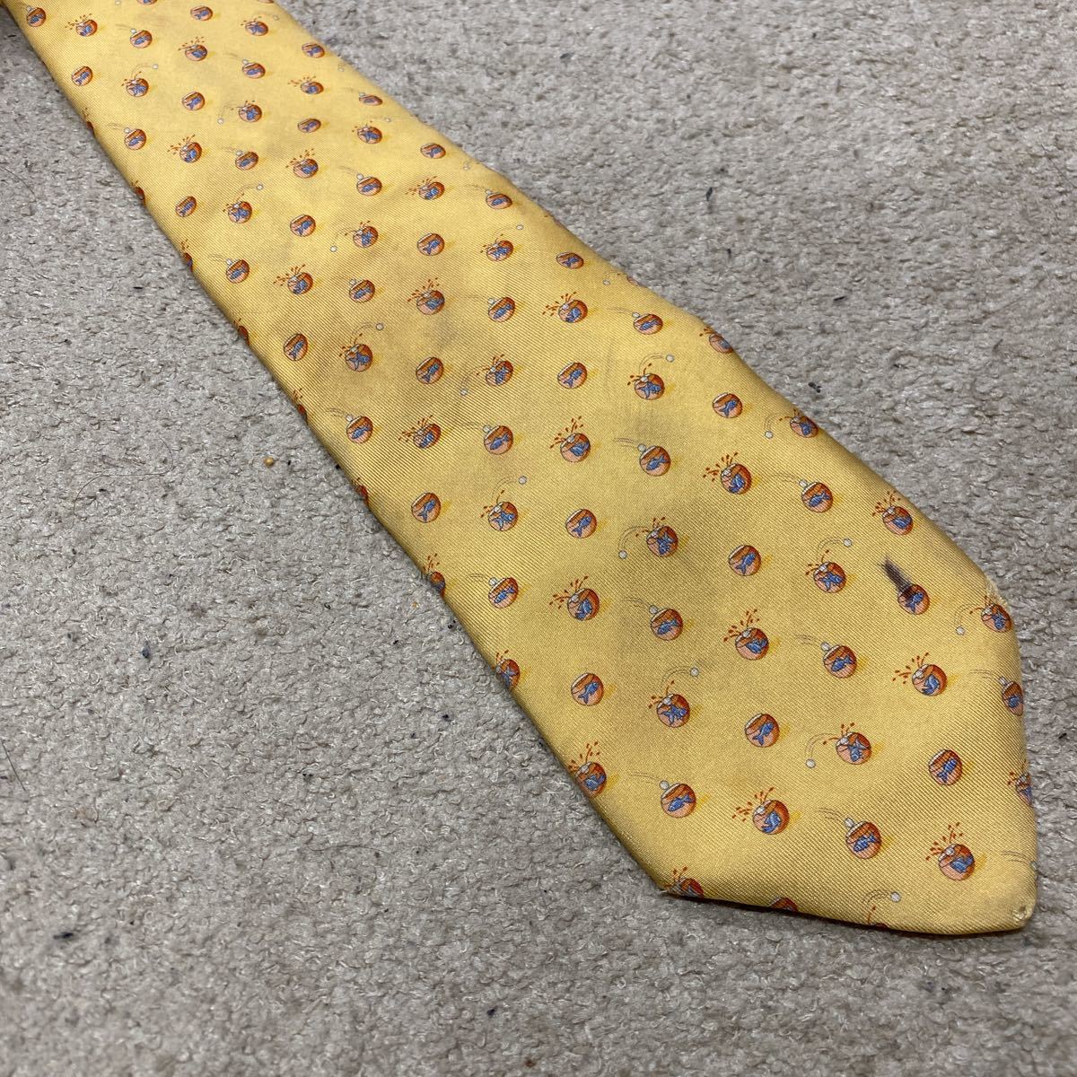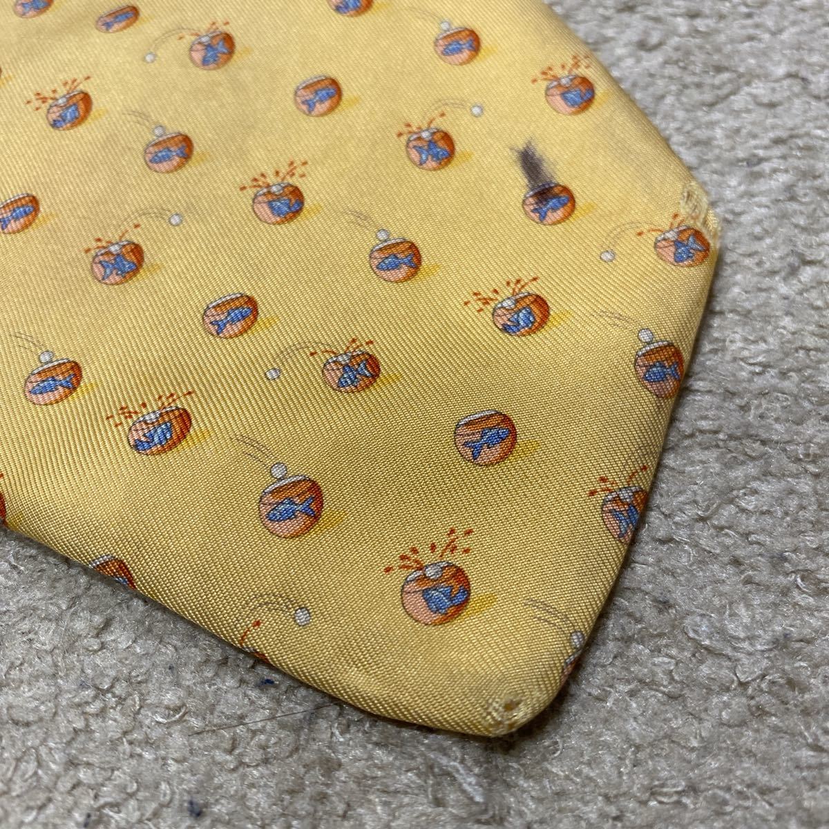 高島屋で購入したネクタイです。 大剣を中心に黒ずんでいます。また、スレなどあります。 万年筆のインクが大剣についています。 結び目あたりはシワがあります。 大剣:9.5cm 小剣:4.5cm 長さ:160cm ※素人採寸ですので多少の誤差はご容赦ください。