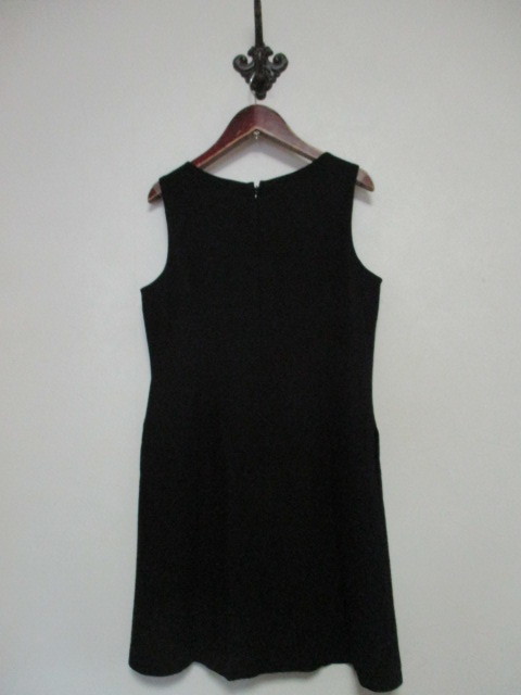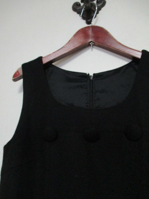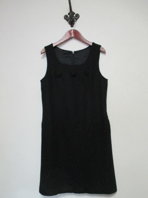 | 商品紹介 | 黒のノースリーブワンピースです。 U字のステッチと大きな飾りボタンがデザインのポイントになっています。 柔らかくて着やすいウール素材です。 《素材》 表地:毛100% 裏地:ポリエステル100% |