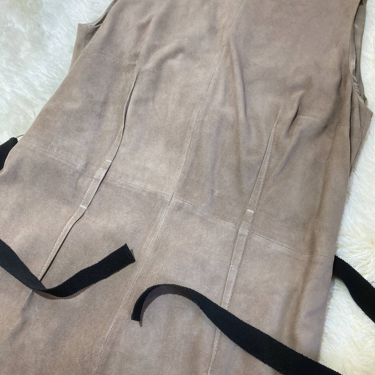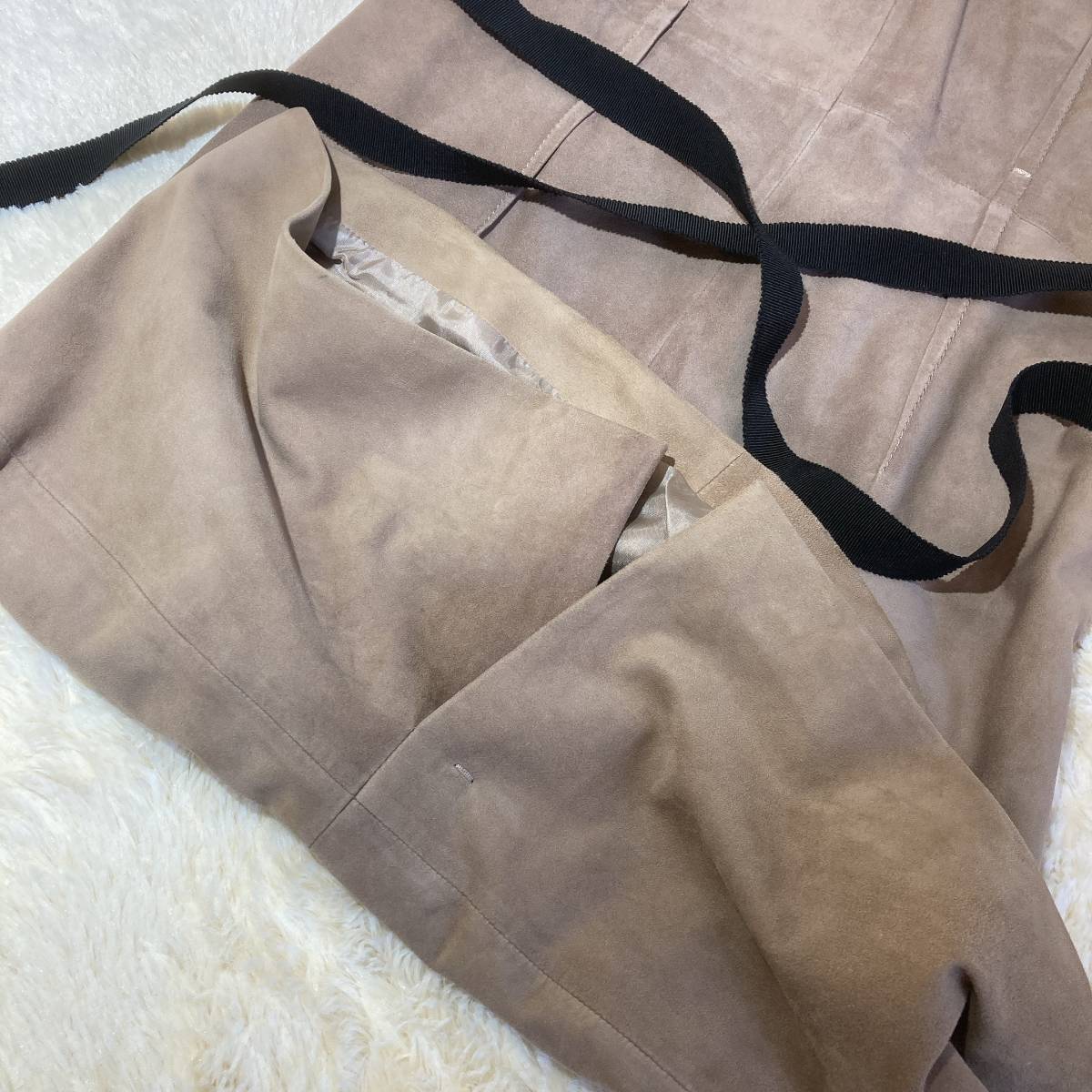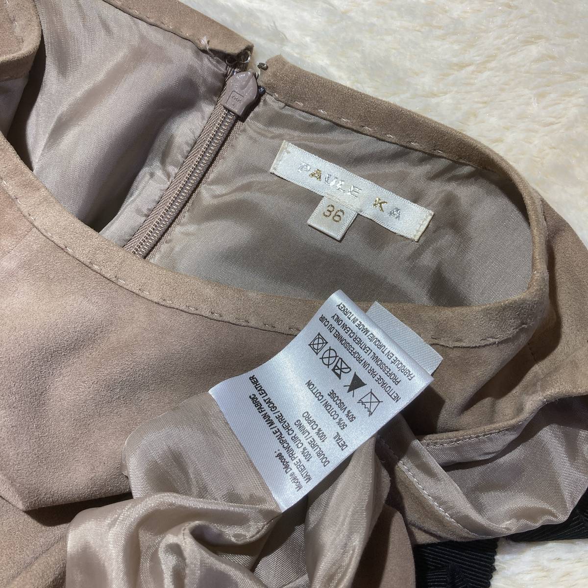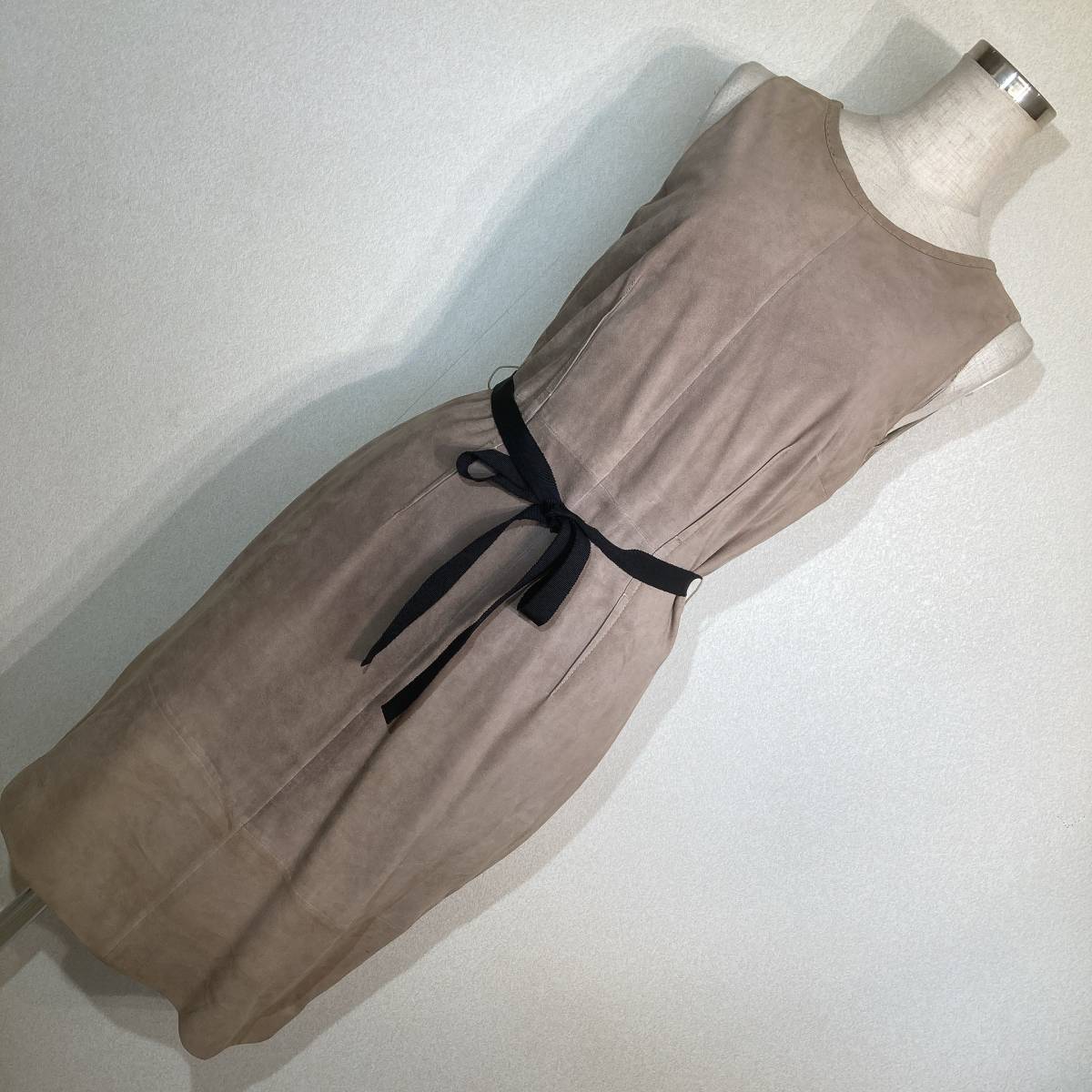 | L926■PAULE KAポールカ★山羊革スエード/ベージュ★N/Sワンピース■36 | |||||||||||