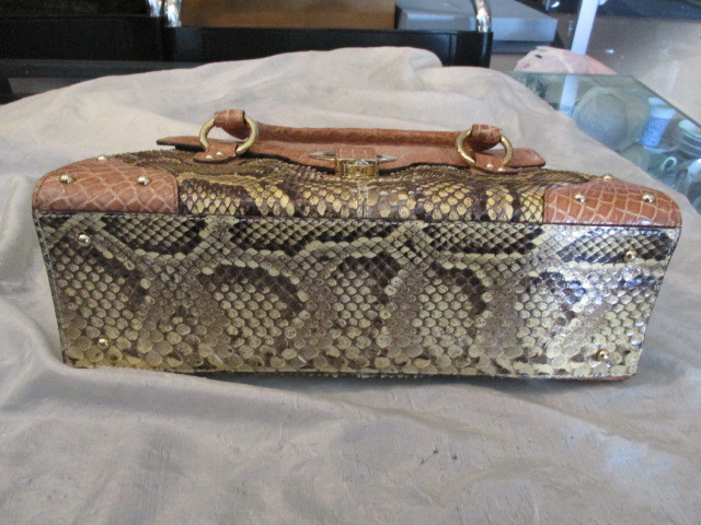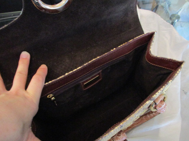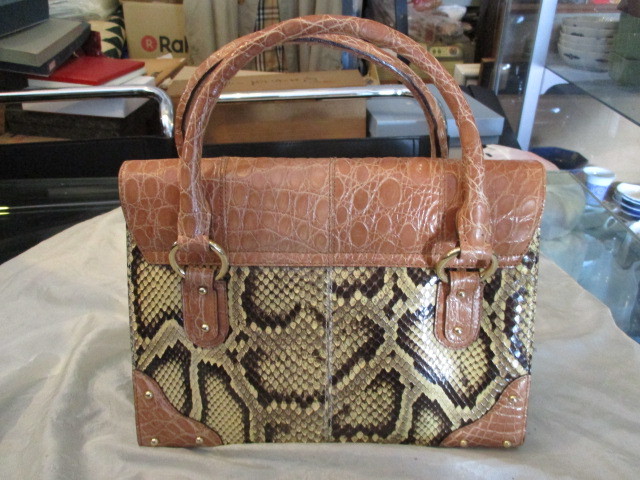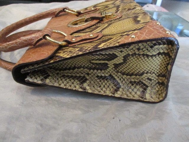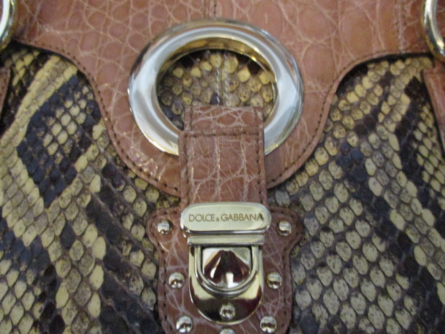 ■DOLCE&GABBANA ドルチェ&ガッバーナ ダイヤモンドパイソンレザー ハンドバッグ ピンク ベージュ 超高級希少品■