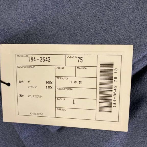 【新品】未使用 シングル2ッ釦ジャケット サイズ L日本製 総裏 ノーベント 袖釦2個 モフモフフカフカ アウトポケット ゼニスブルー色