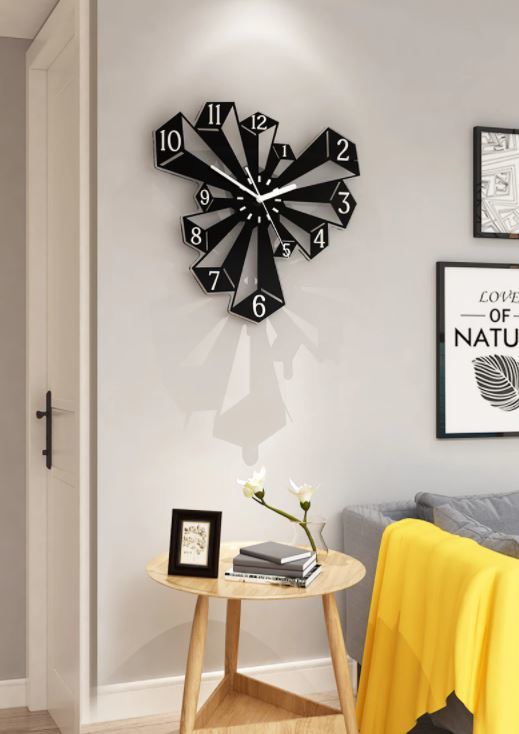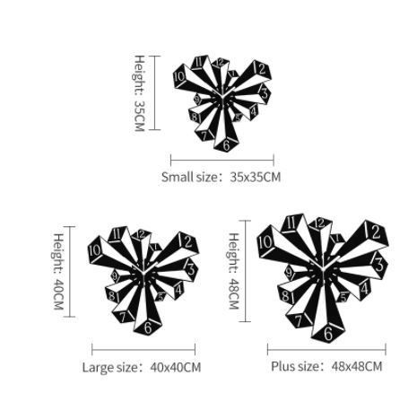 モダンなデザインの壁掛け時計  40×40cm ブラック 立体的で精巧なデザイン。静音。バッテリー(単3電池1本)電池は含みません。