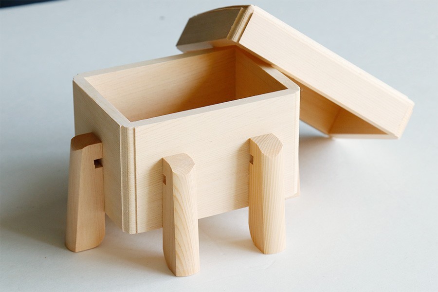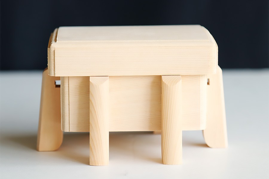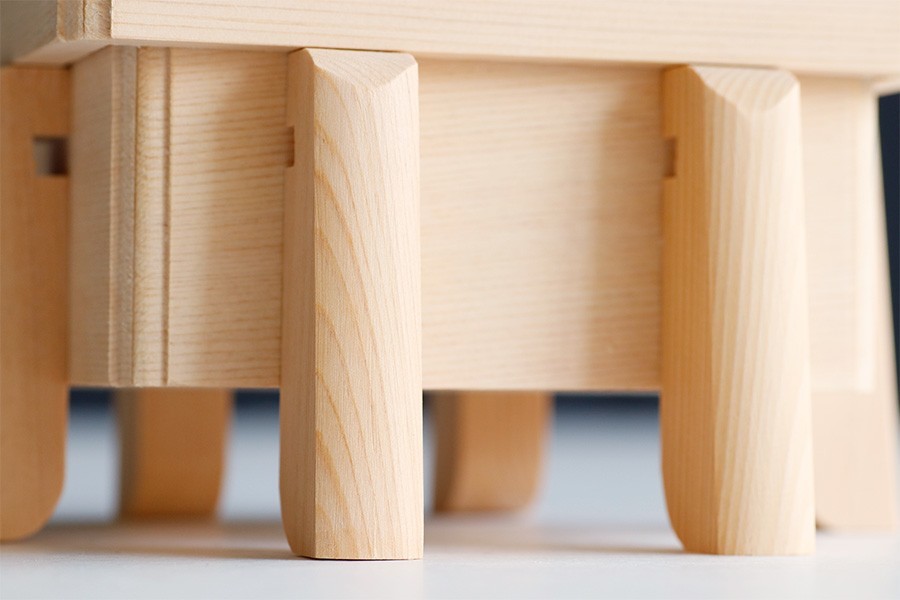六本脚の唐櫃となります。御霊代・神饌などを保管します。 かぶせ蓋仕様。 伊勢神宮に奉納される「ご神木」は、長野県と岐阜県境をまたぐ木曽山系より産出されます。寒さの厳しいこの地で産出される檜は、目の詰まった美しい年輪をしつらえ、「木曽ひのき」「尾州桧」「官材」等と呼ばれる希少な木材として珍重されます。 神具用の素材として使用される場合は最も高級な製品に使用されています。 その貴重な桧材と優れた木工技術が集約された、美しい神具、「美・木曽ひのき」シリーズ。 | ||||