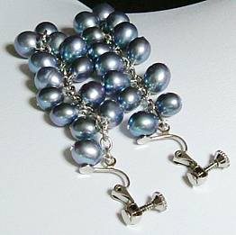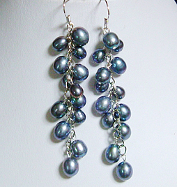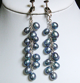 真珠層100%●上質天然淡水真珠のロングイヤリング●ダークグレー●無料でフック式ピアスに変更可能