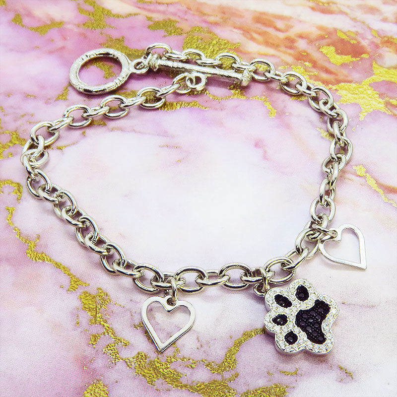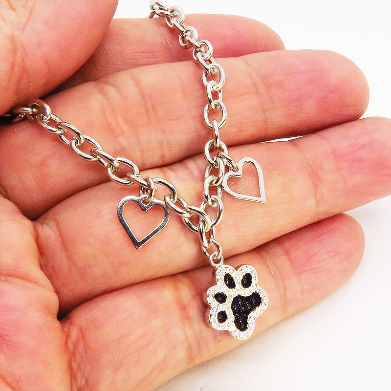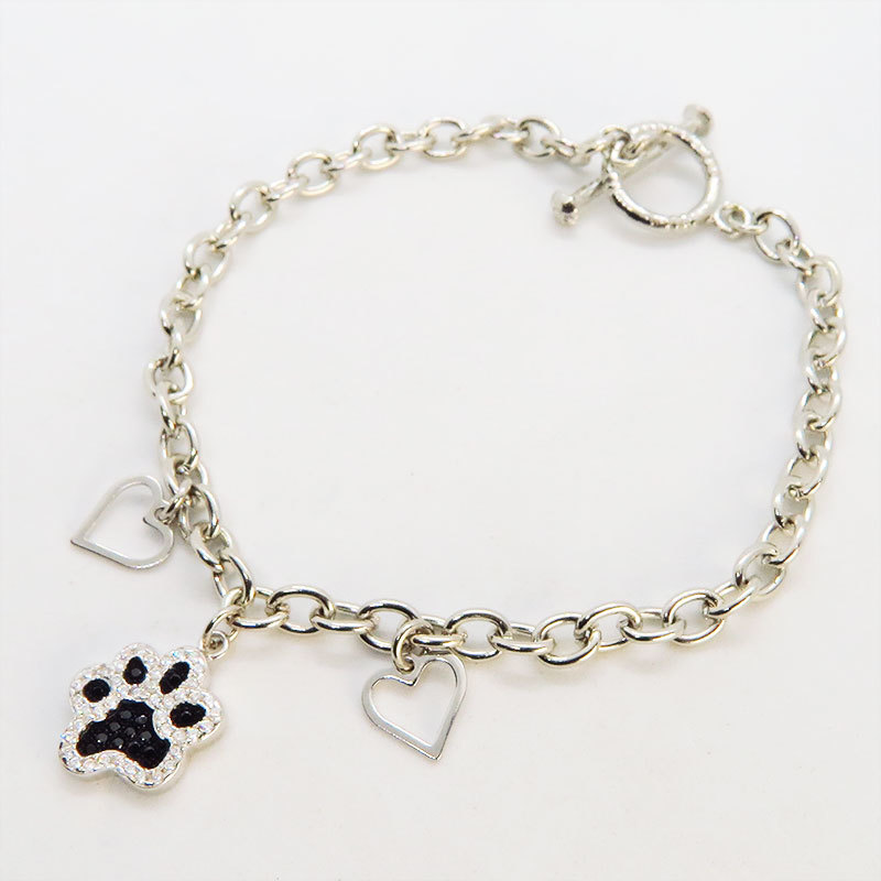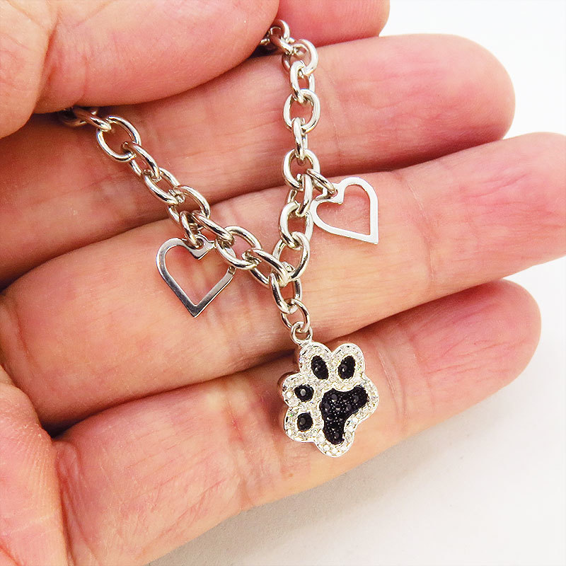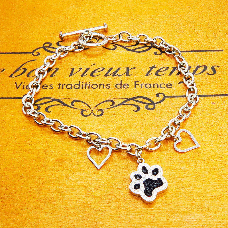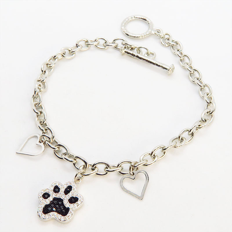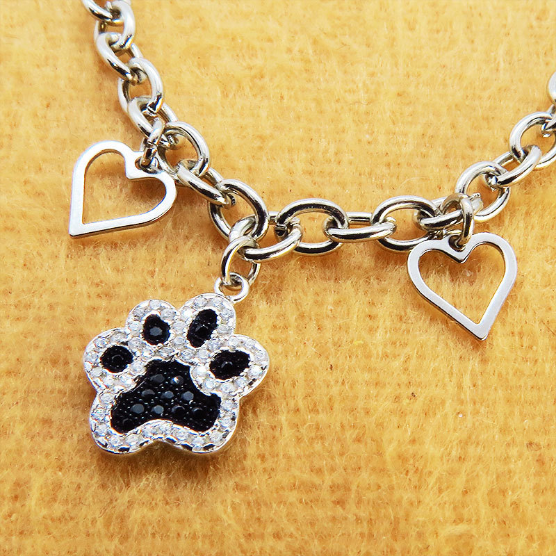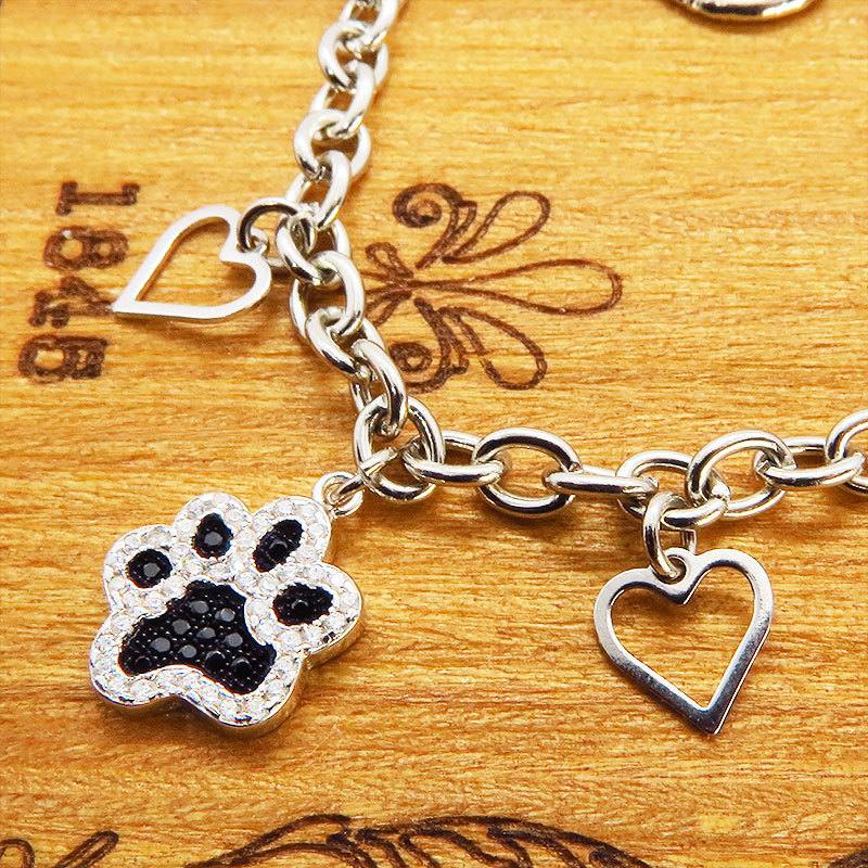 肉球モチーフのペンダントブレスレット シルバー925 ジルコン 猫好き 犬好き