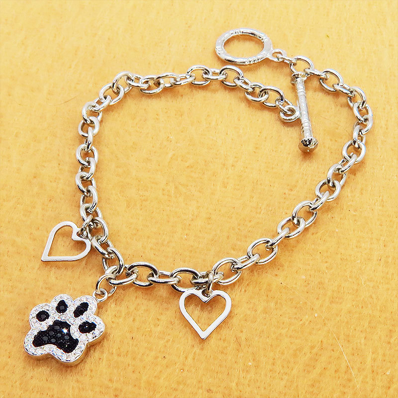 猫好き・犬好きには定番の肉球モチーフのペンダントのついたブレスレットです