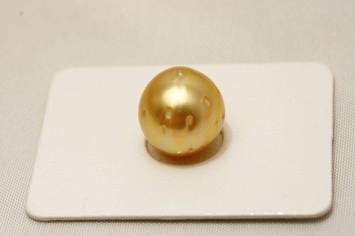 | しっかりとした天然金色に煌めく南洋白蝶真珠ルースです。ナチュラルカラーなのでテリも抜群です。キズは散見されます。リングやペンダントなどにオススメです。 | ||