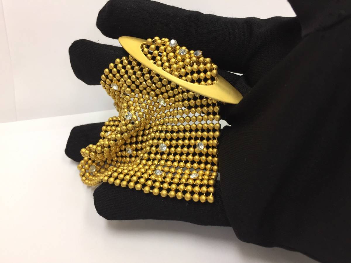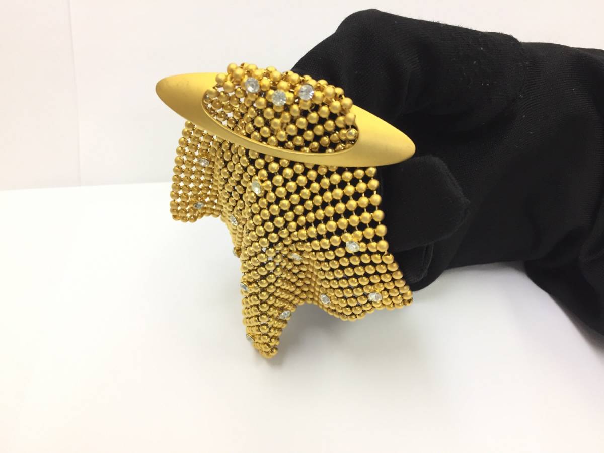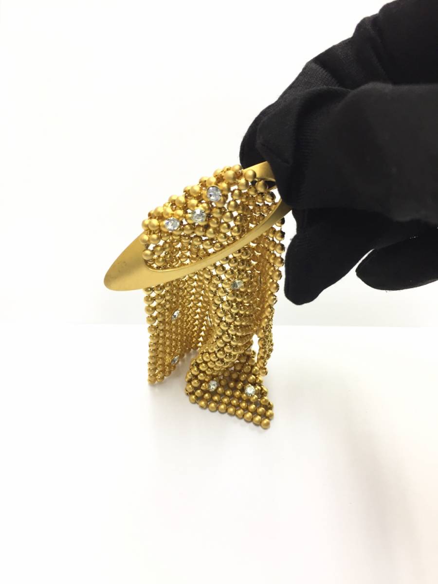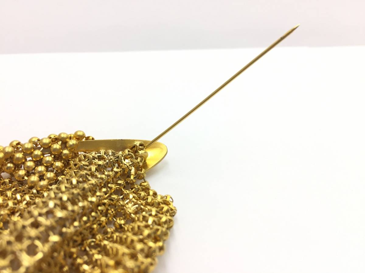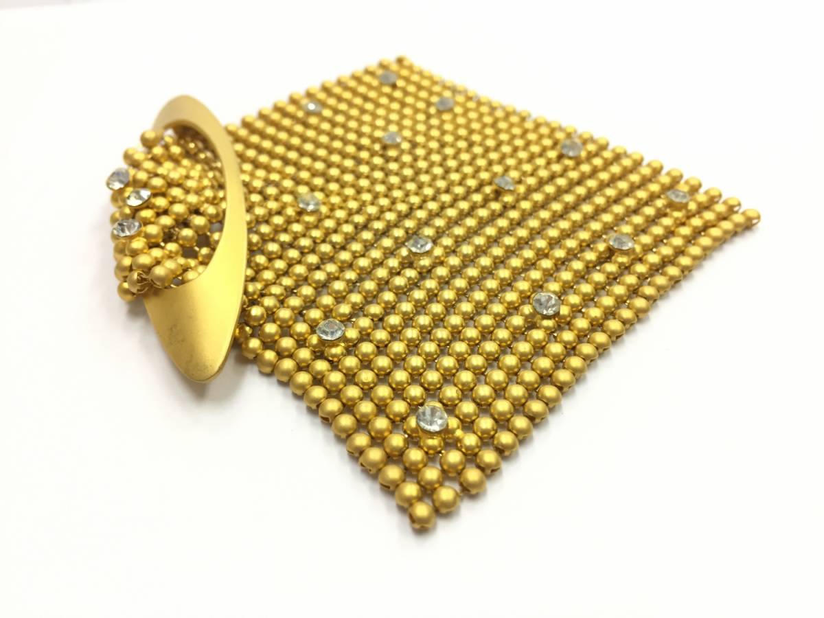 【ブローチ】約8.3×9cm 鎖帷子のようなハイセンスデザイン 躍動感あるデザイン 金色 キラキラのストーン アクセサリー 華やか