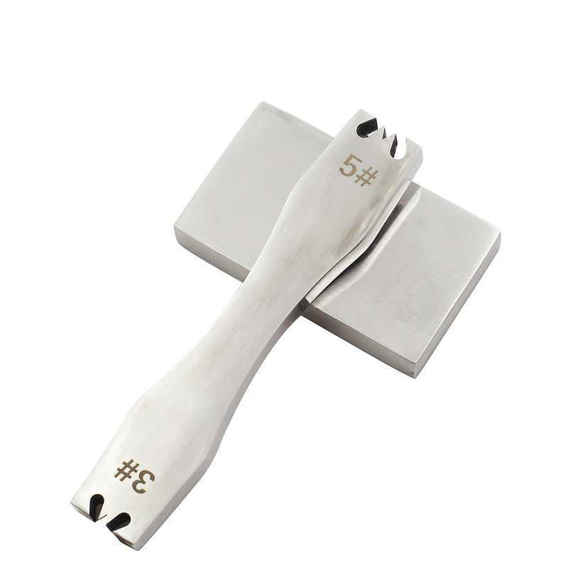 付属の台の上にファスナー(ジッパー)を乗せ、エレメント(むし)をこちらの商品で叩くと外すことができます。