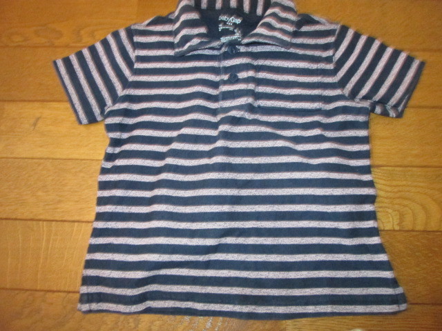 100 半袖 baby GAP 黒ボーダー柄ポロシャツ