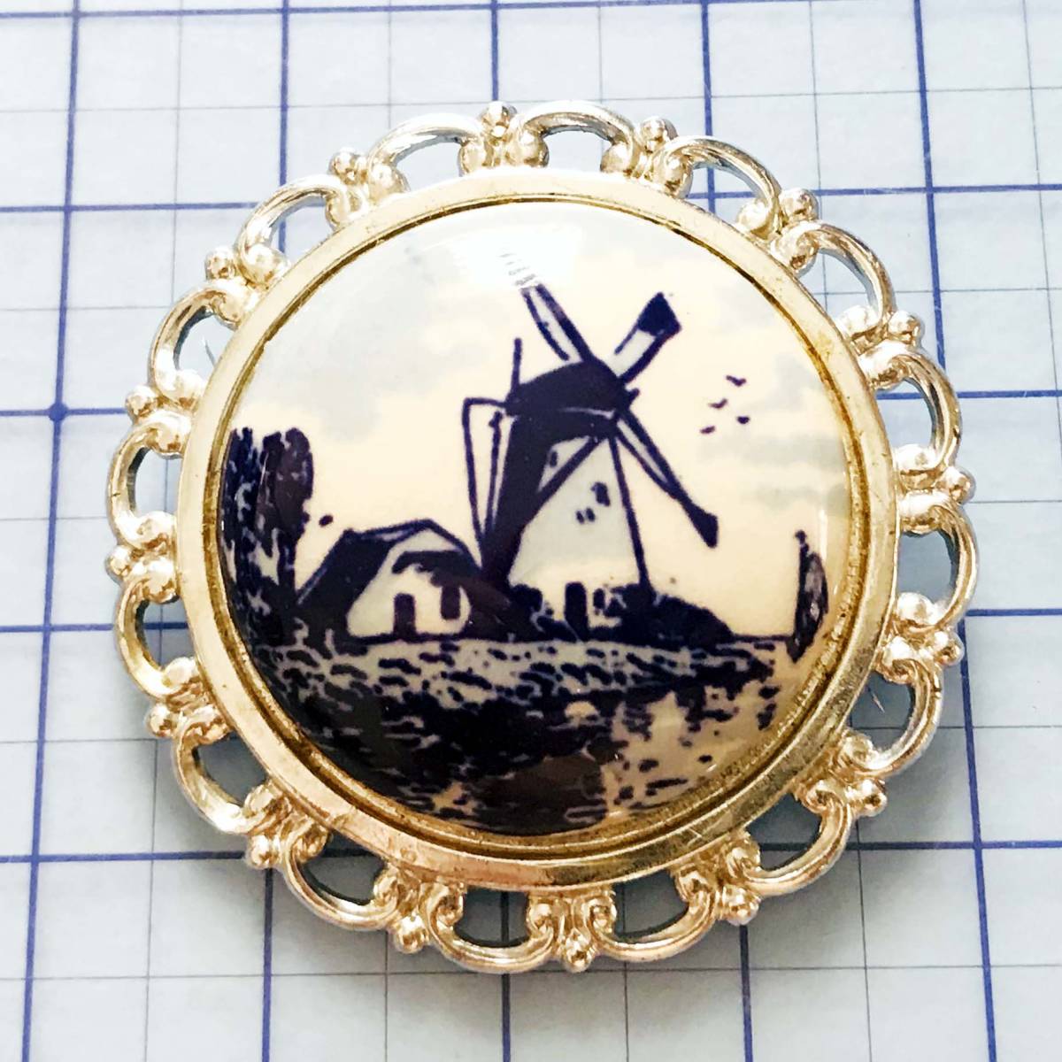 美品 陶器 磁器 焼き物 風車 銀色ブローチ No.5003