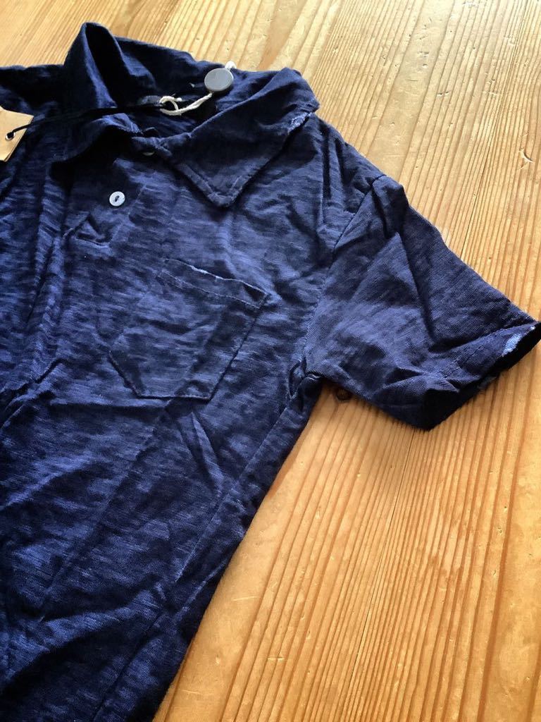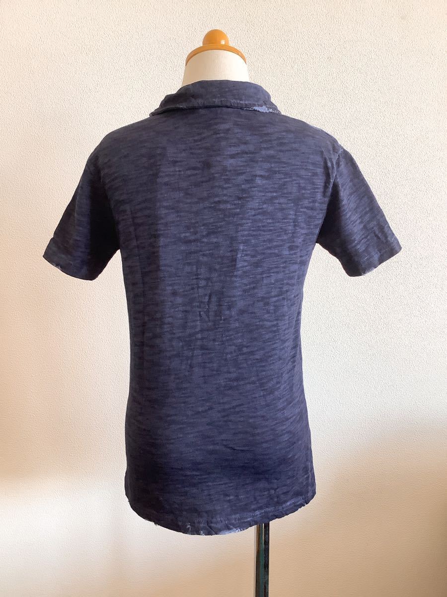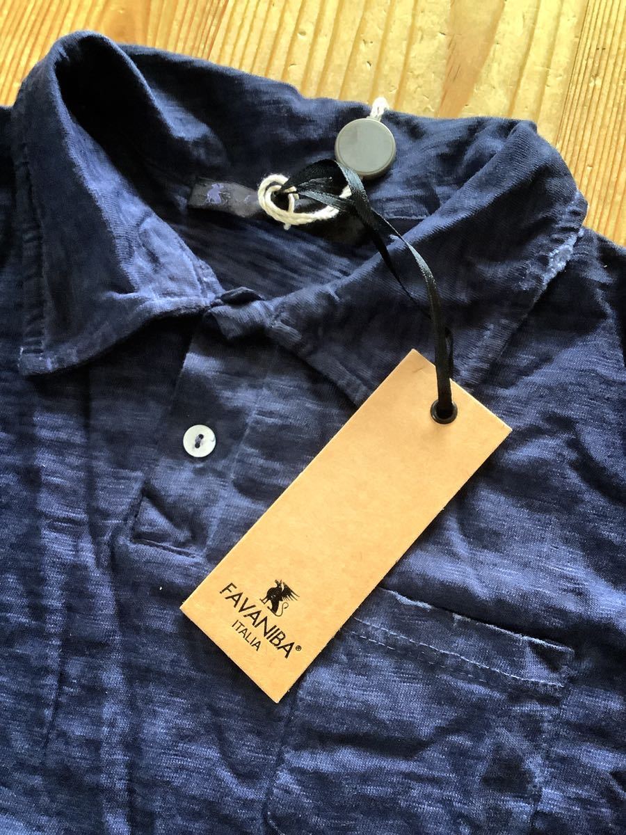 キッズ100cm【FAVANIBA】イタリアブランド ネイビー 後染め 襟付き半袖トップス | |||