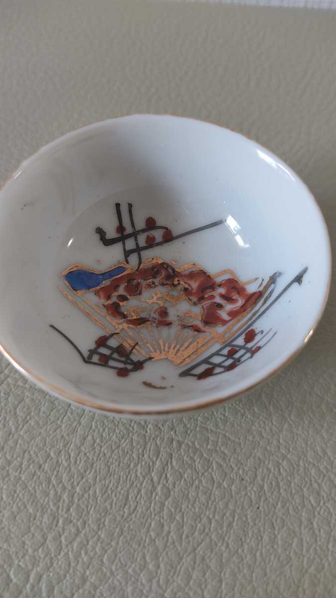 猪口 盃 ぐい呑 染付 扇 梅 昭和レトロ品