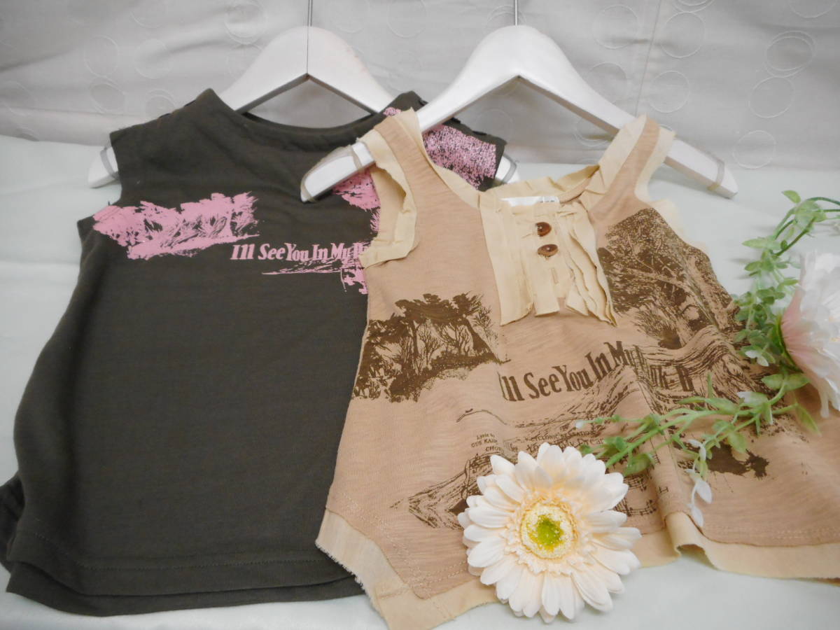 子供服 Tシャツ デザインTシャツ 胸元プリント柄 カーキ色 120サイズ 2枚 在庫品