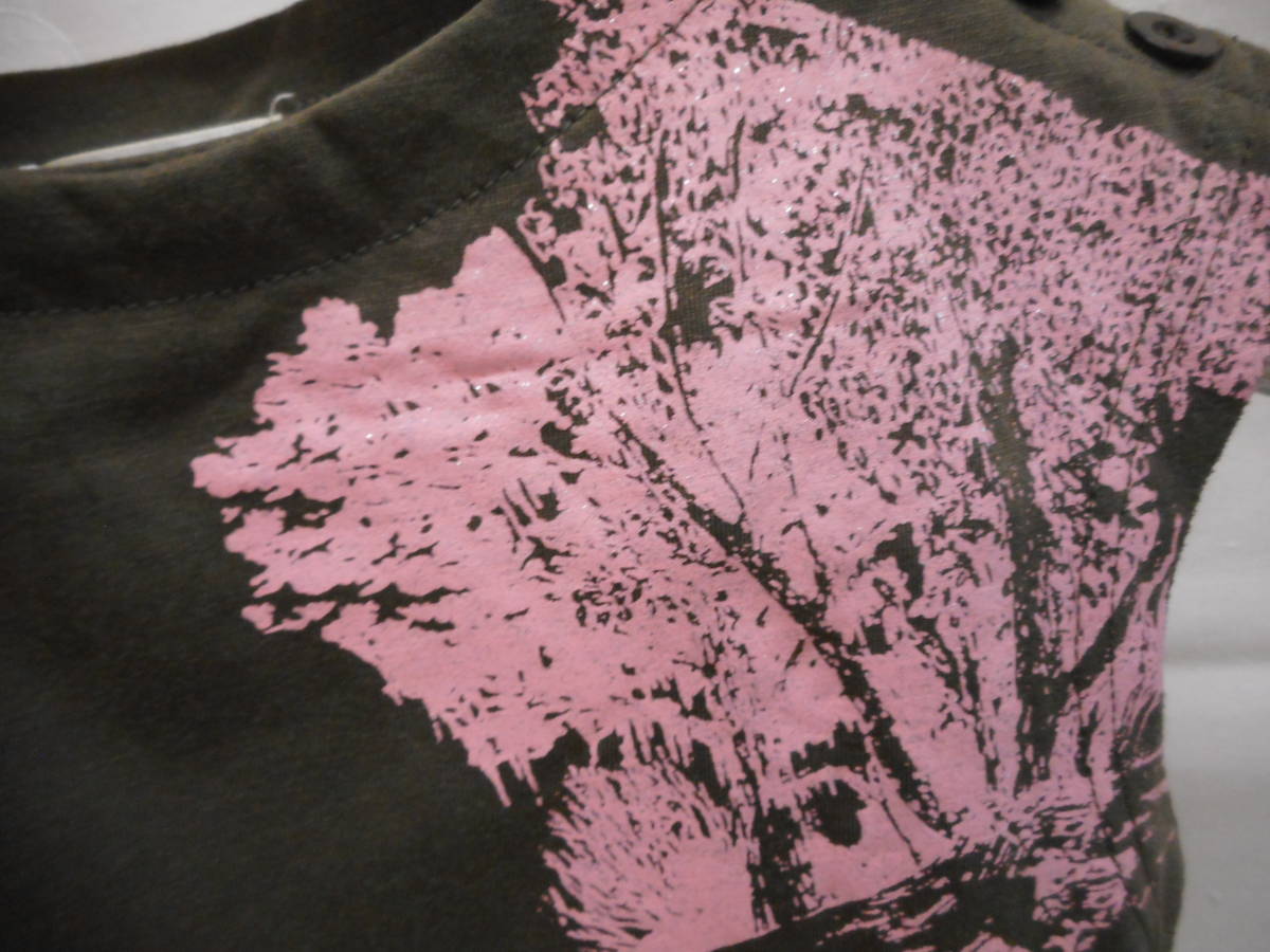 子供服 Tシャツ デザインTシャツ 胸元プリント柄 カーキ色 120サイズ 在庫品
