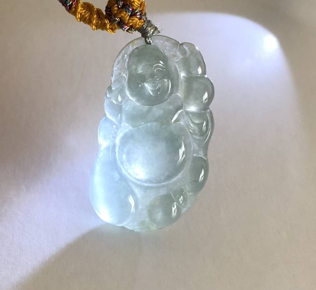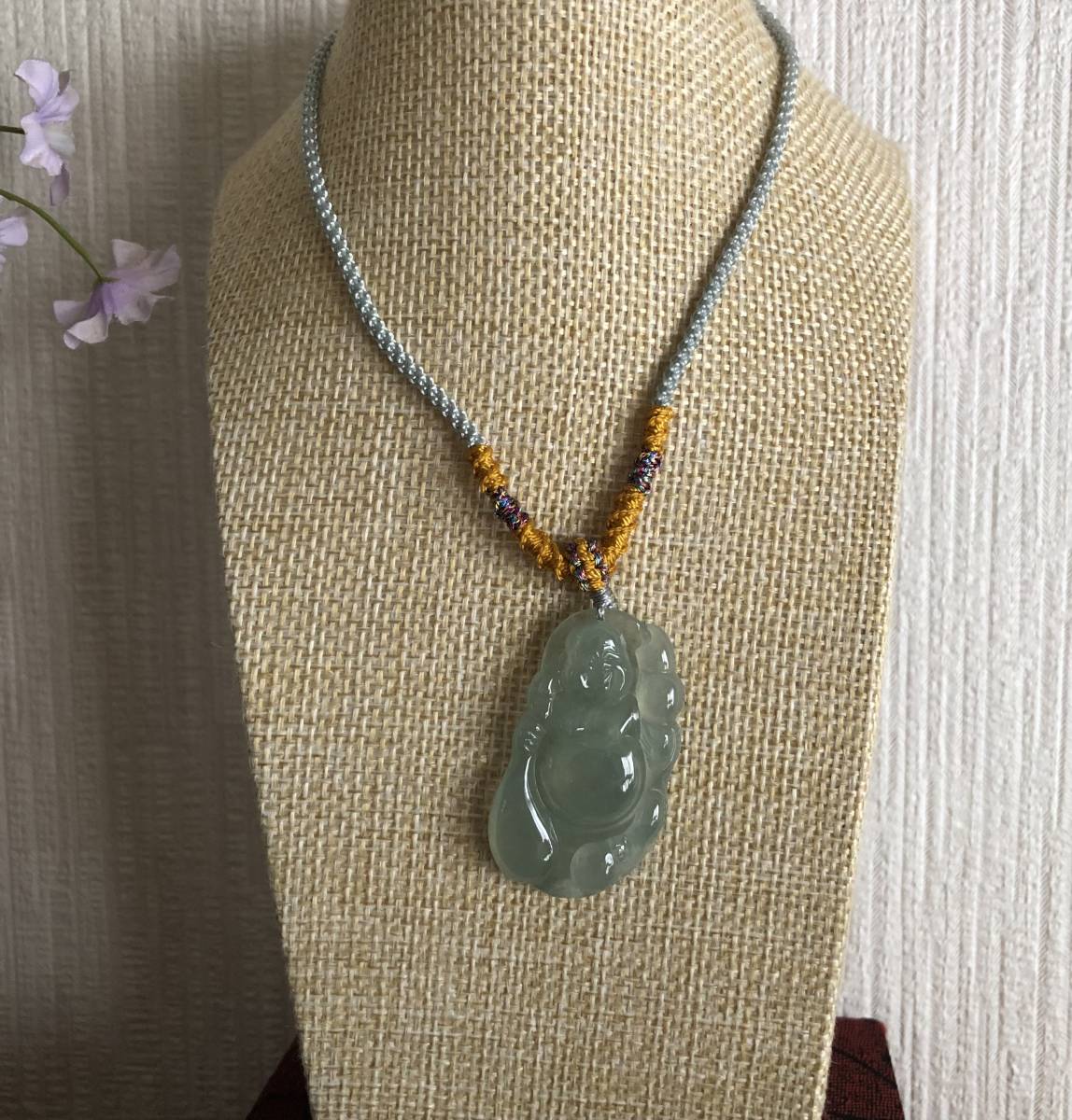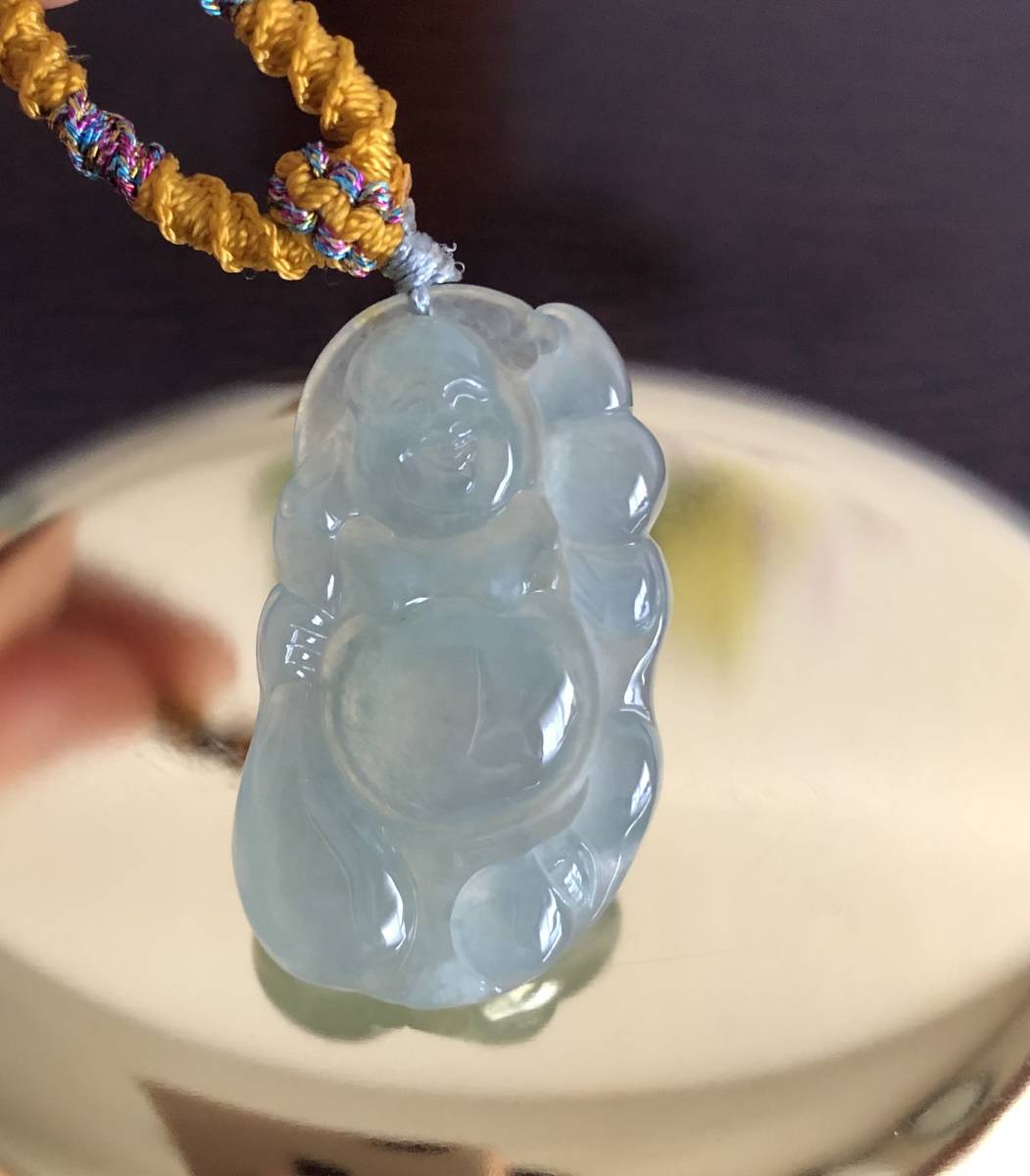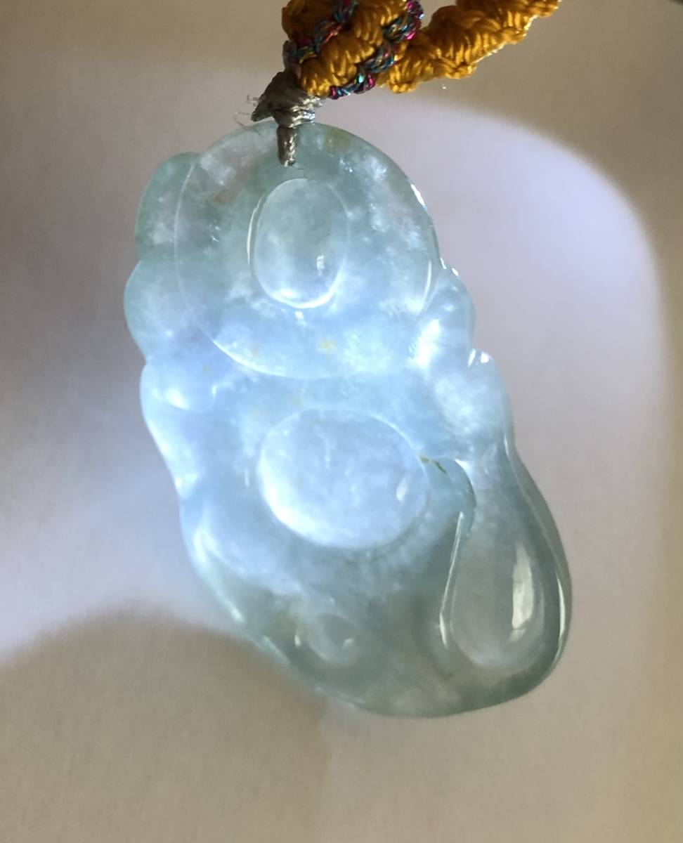 非常に透明度の高い貴重な氷質翡翠から作られた美しいペンダントネックレスです。緻密な石質、ゼリーのように潤みのある石質と蛍光感のある晴水色素晴らしい一品です。
