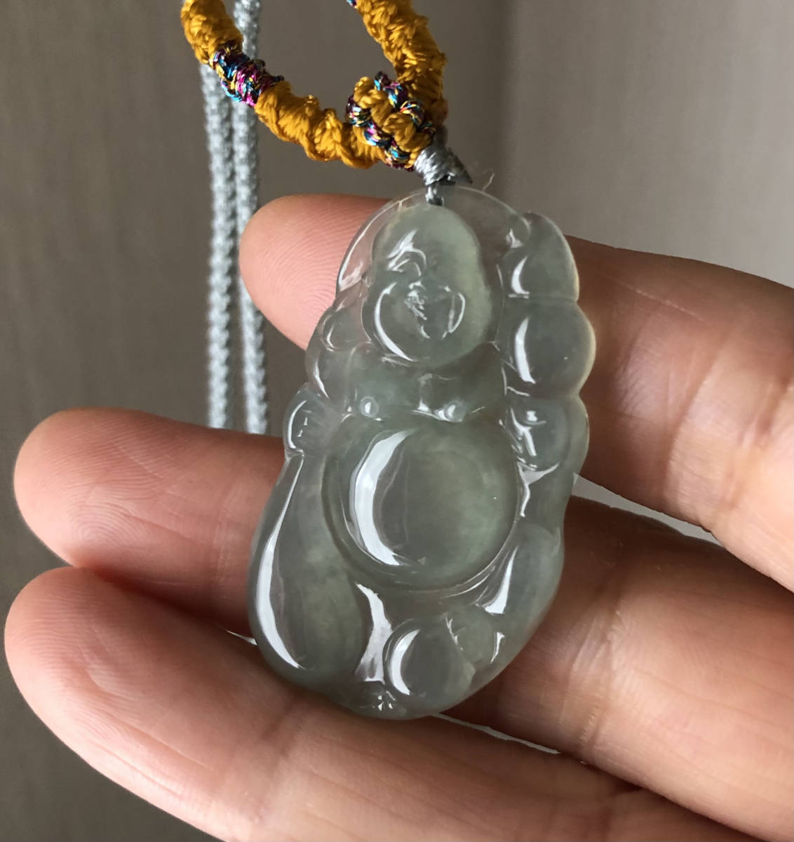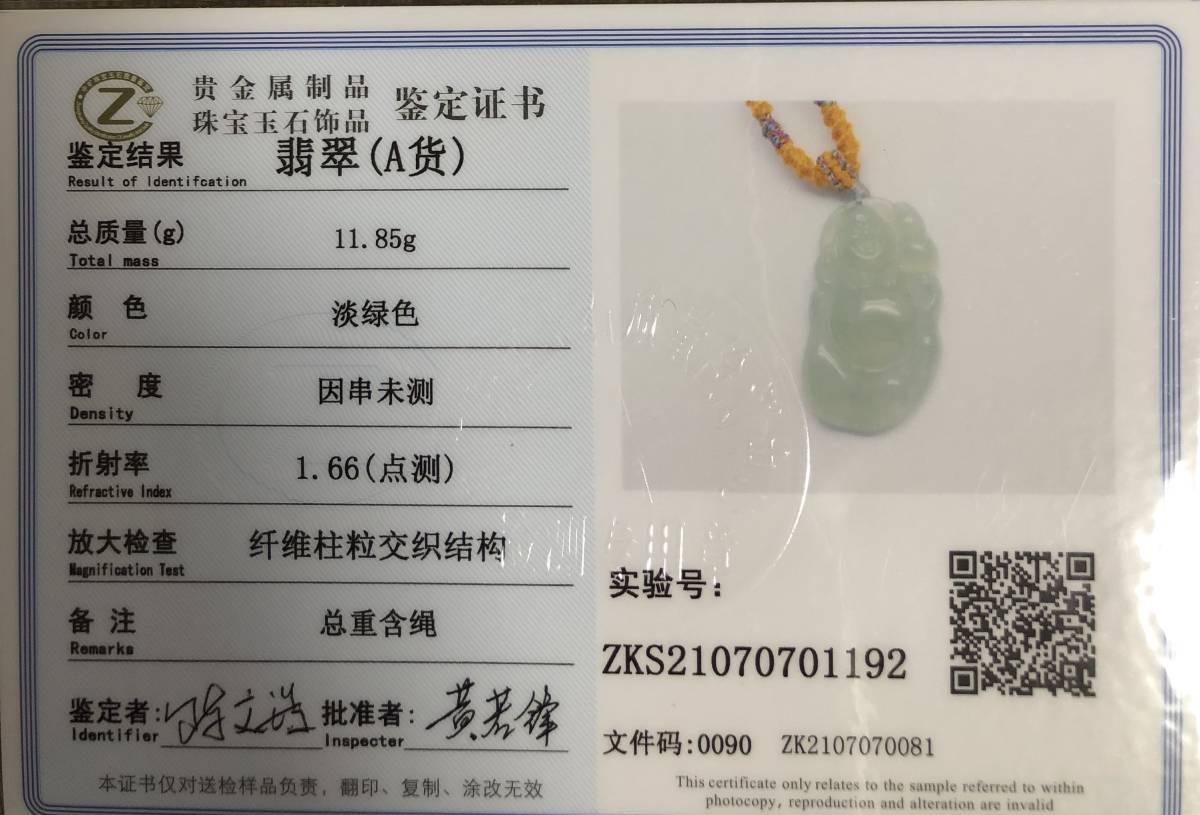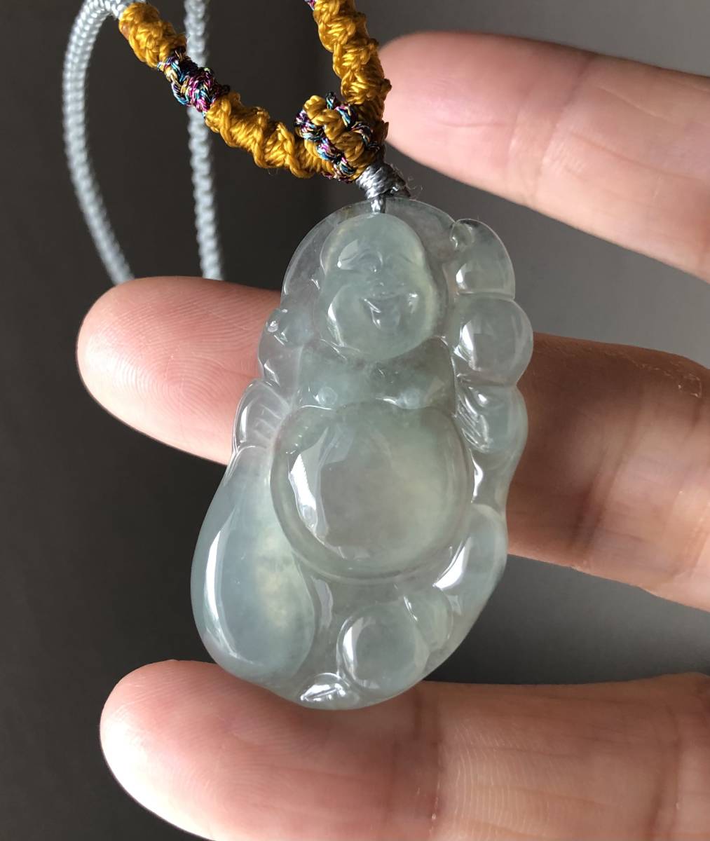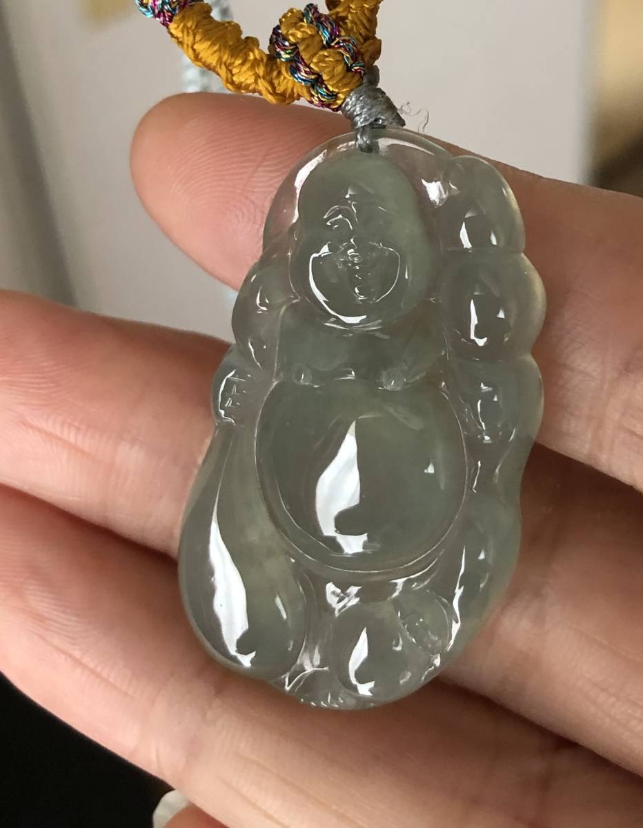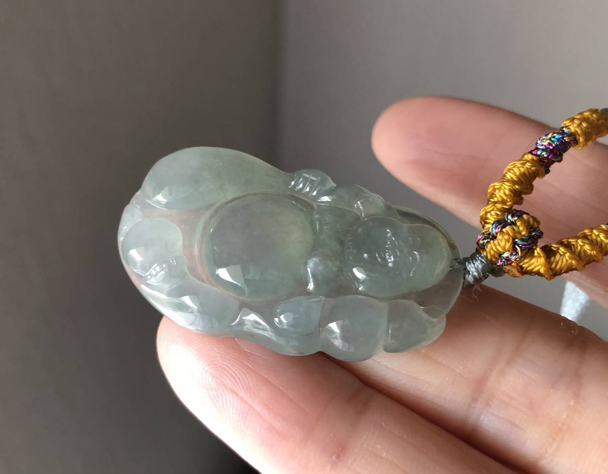 非常に透明度の高い貴重な氷質翡翠から作られた美しいペンダントネックレスです。緻密な石質、ゼリーのように潤みのある石質と蛍光感のある晴水色素晴らしい一品です。