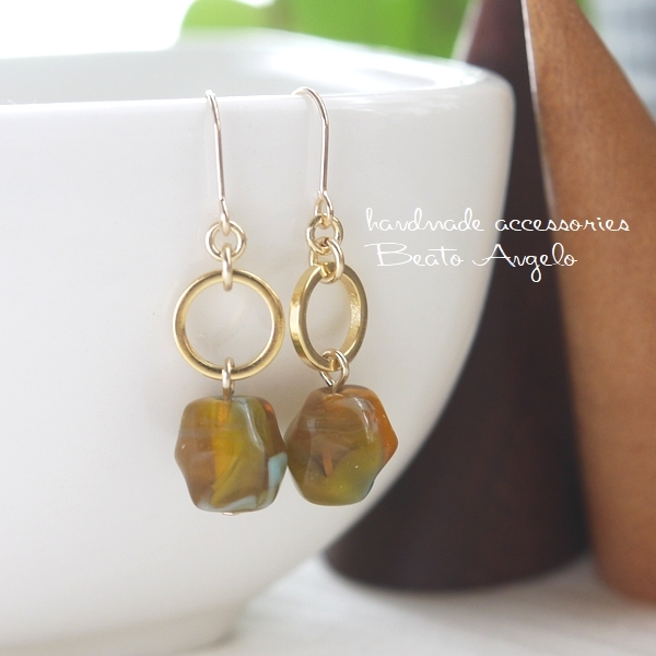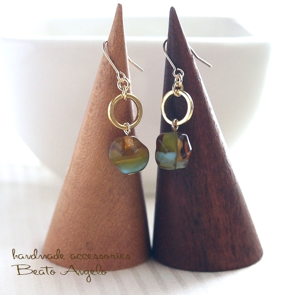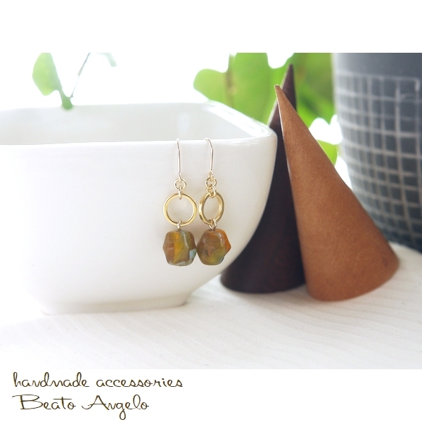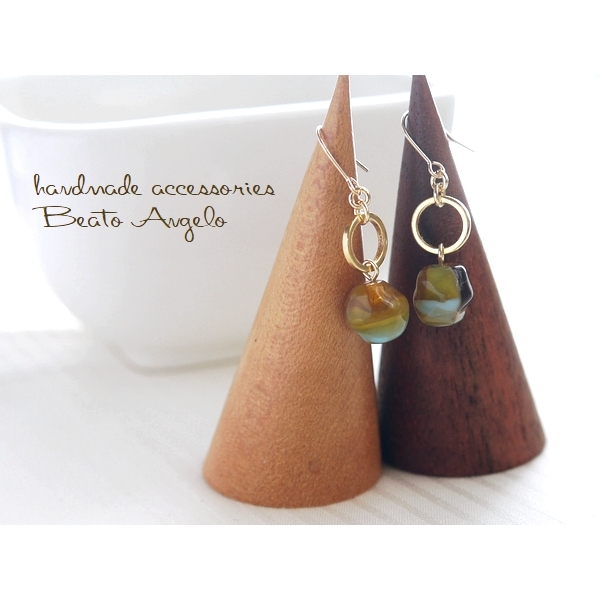 ♪♪+angelo+チェコバロックのリングピアス(p-004)アンバー&ターコイズ G