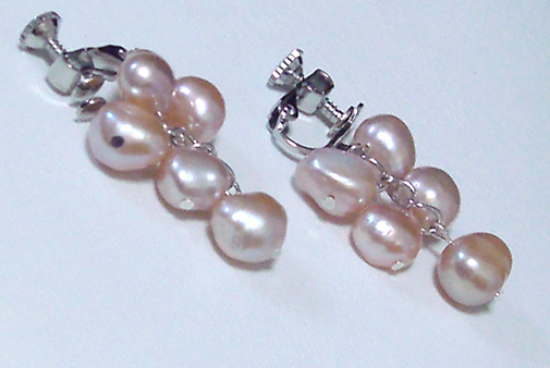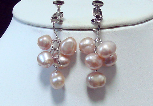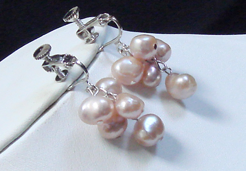 真珠層100%●天然淡水真珠のセミロングイヤリング●ラベンダー●無料でピアスに変更可能