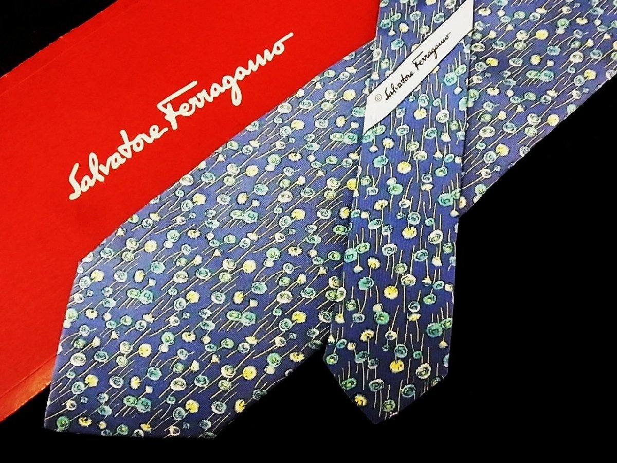 ♪今週の特売980円~♪0820W♪状態並品【Ferragamo】フェラガモ【花 小花 柄】ネクタイ♪