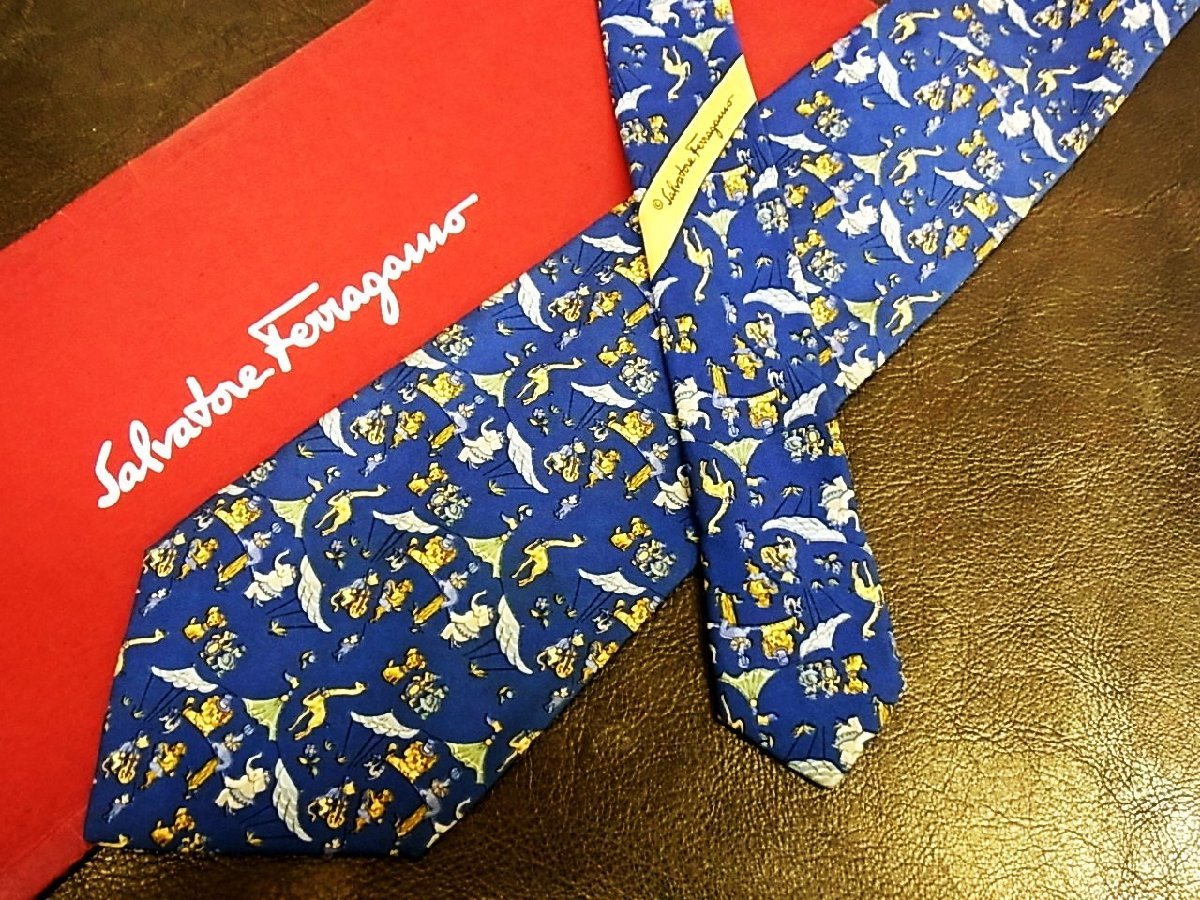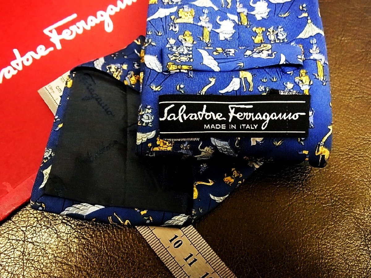 ♪今週の特売980円~♪1559W♪状態並品【Ferragamo】フェラガモ【象 キリン 動物 サーカス 柄】ネクタイ♪