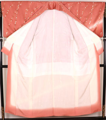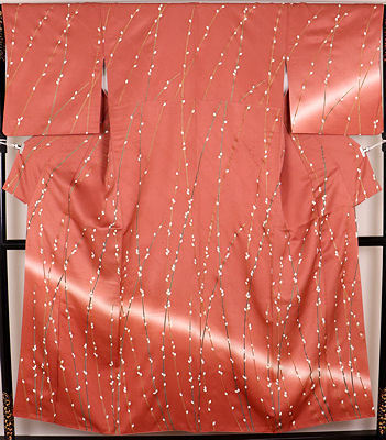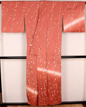 | 訪問着 袷 丹後縮緬 綸子生地 薄赤茶紫色に赤紫ぼかしにあられ綸子地 猫柳 160 広襟 | |