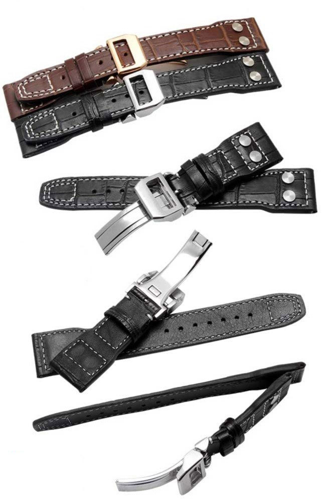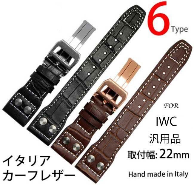 iwc腕時計など装着可能互換汎用カーフレザーベルト Dバックル付き 取付幅22mm iwc腕時計装着可能ベルト在庫処分