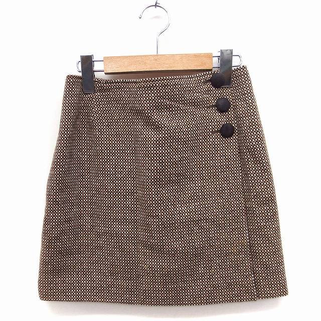 ビドンナ B donna 台形スカート ラップスカート ミニ チェック柄 ウール ブラウン 茶 /FT19 レディース