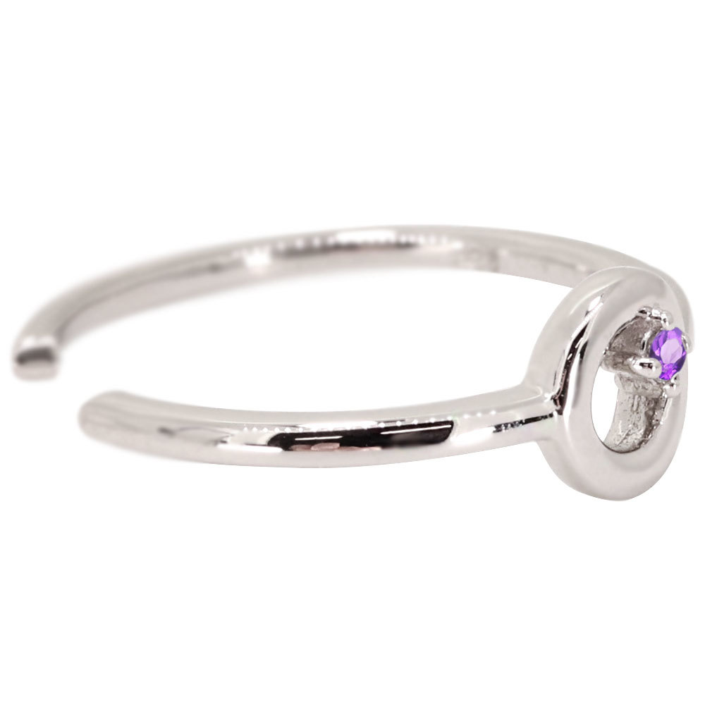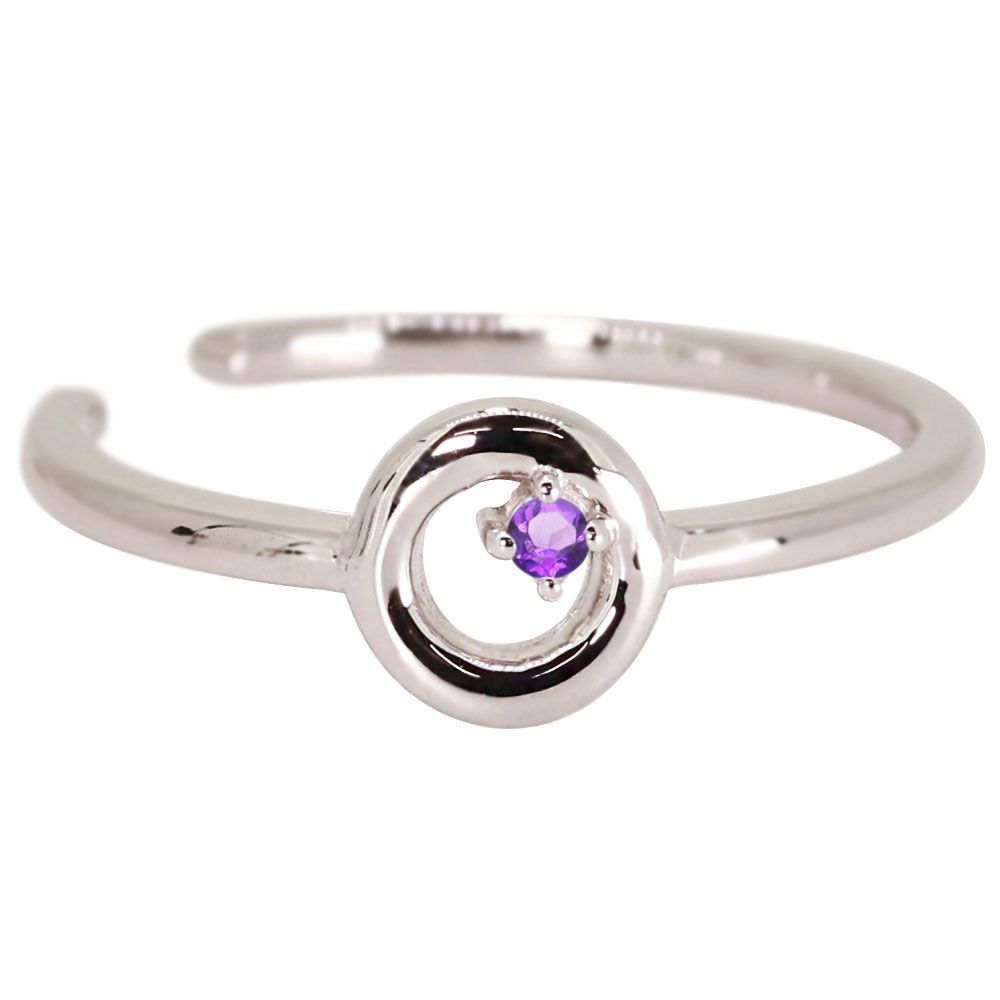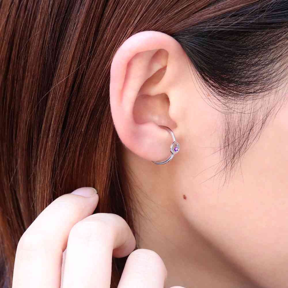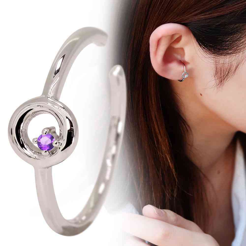 2月誕生石アメジストを使用したプラチナ製の、幾何学デザイン(丸)のイヤーカフです。