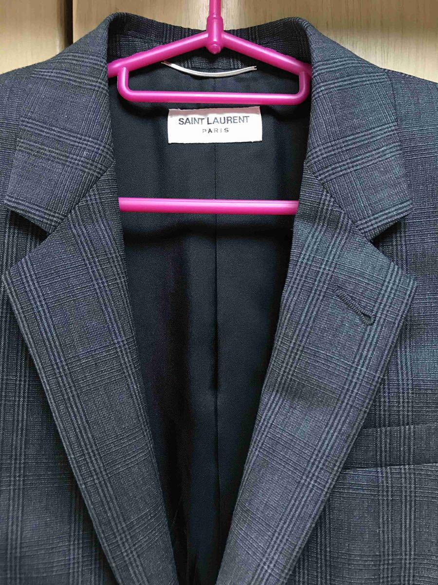 国内正規 15AW SAINT LAURENT PARIS サンローラン パリ エディ期 総裏 シルク グレンチェック テーラード ジャケット 44