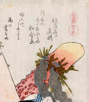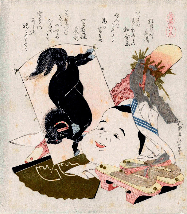 ■ 作者: 葛飾北斎 作品名: 馬尽くし 駒下駄 50x47cm 複製