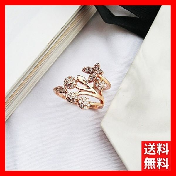 オープンリング 指輪 ゴールド 花 蝶 cz フラワー バタフライ レディース 韓国 調整可能 キュービックジルコニア キラキラ 綺麗 #C913-2