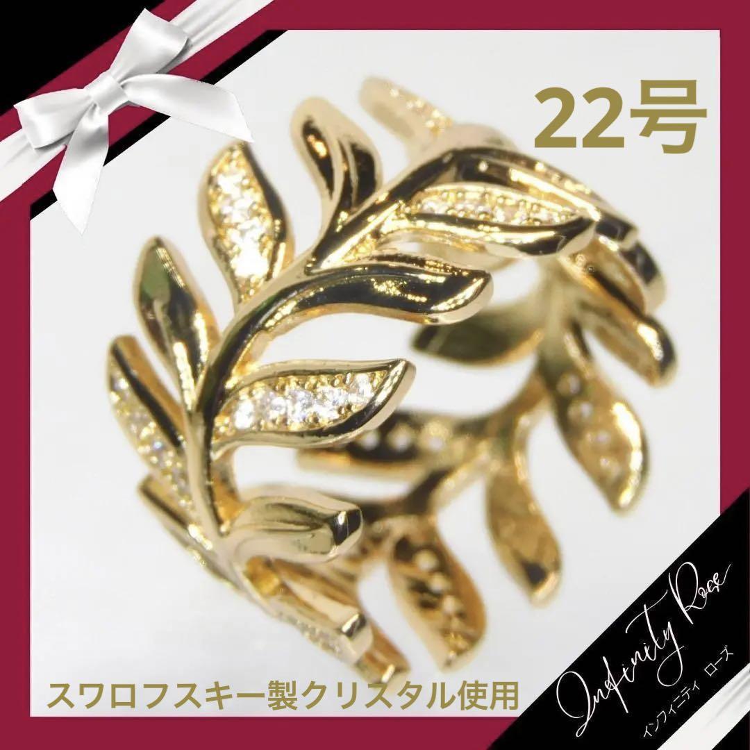 (1120)22号 リーフデザイン豪華無数のクリスタルワイドリング 爪留め指輪 スワロフスキー製クリスタル使用