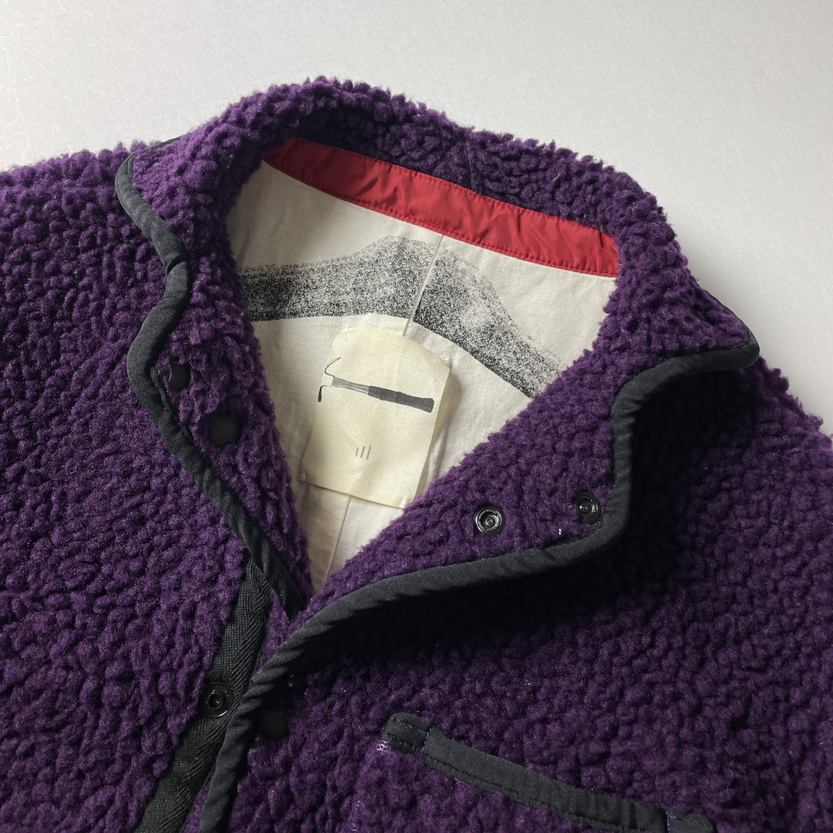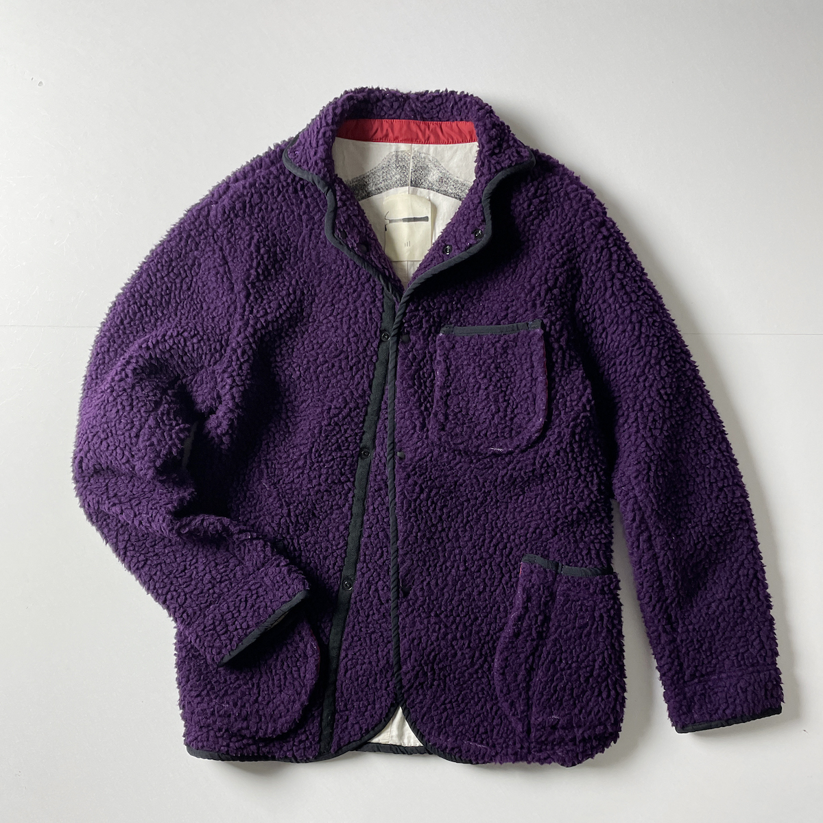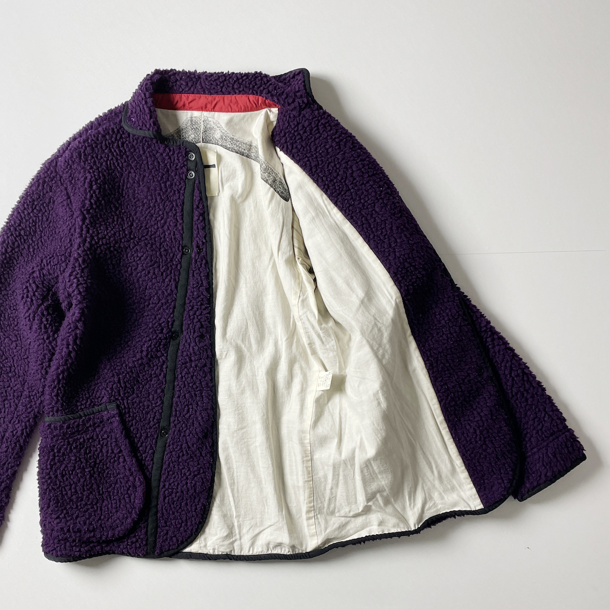 VOO ヴォー 3 / L アシンメトリー 2WAY ウォッシャブル 厚手 ボア ジャケット 紫 パープル 総裏地 フリース 春 秋 冬 ミドル丈 細身 無地