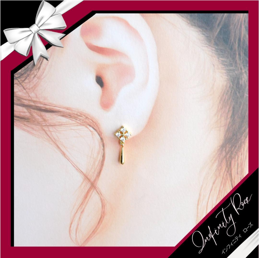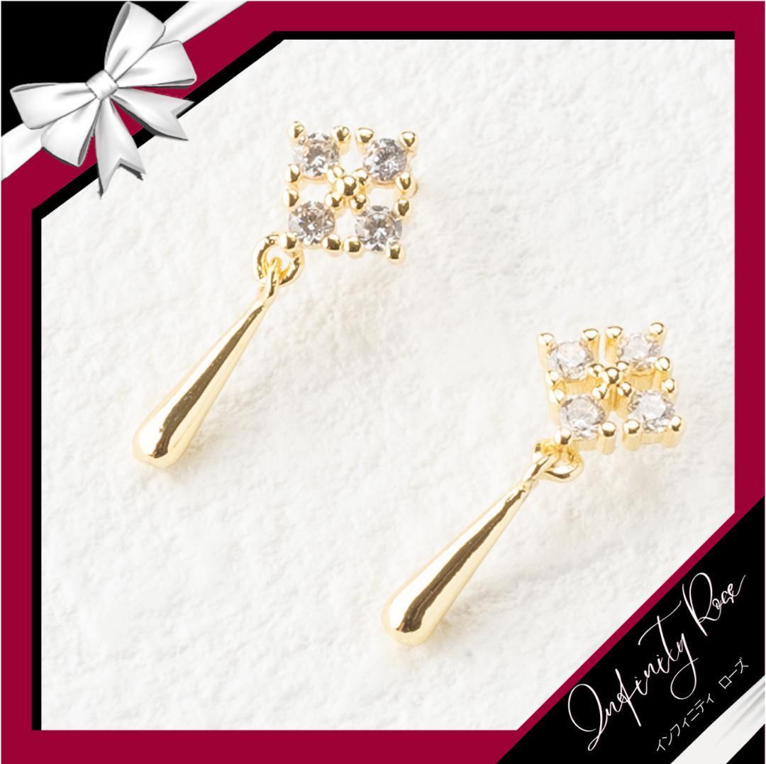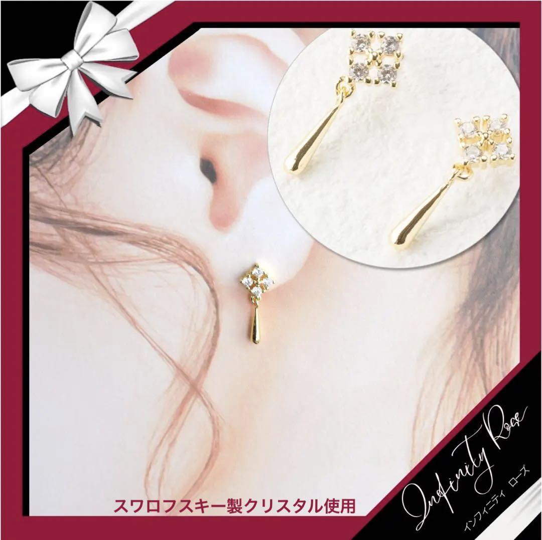 (5075)ゴールド揺れるドレスアップ 大人シックなピアス 高価爪留め スワロフスキー製クリスタル使用