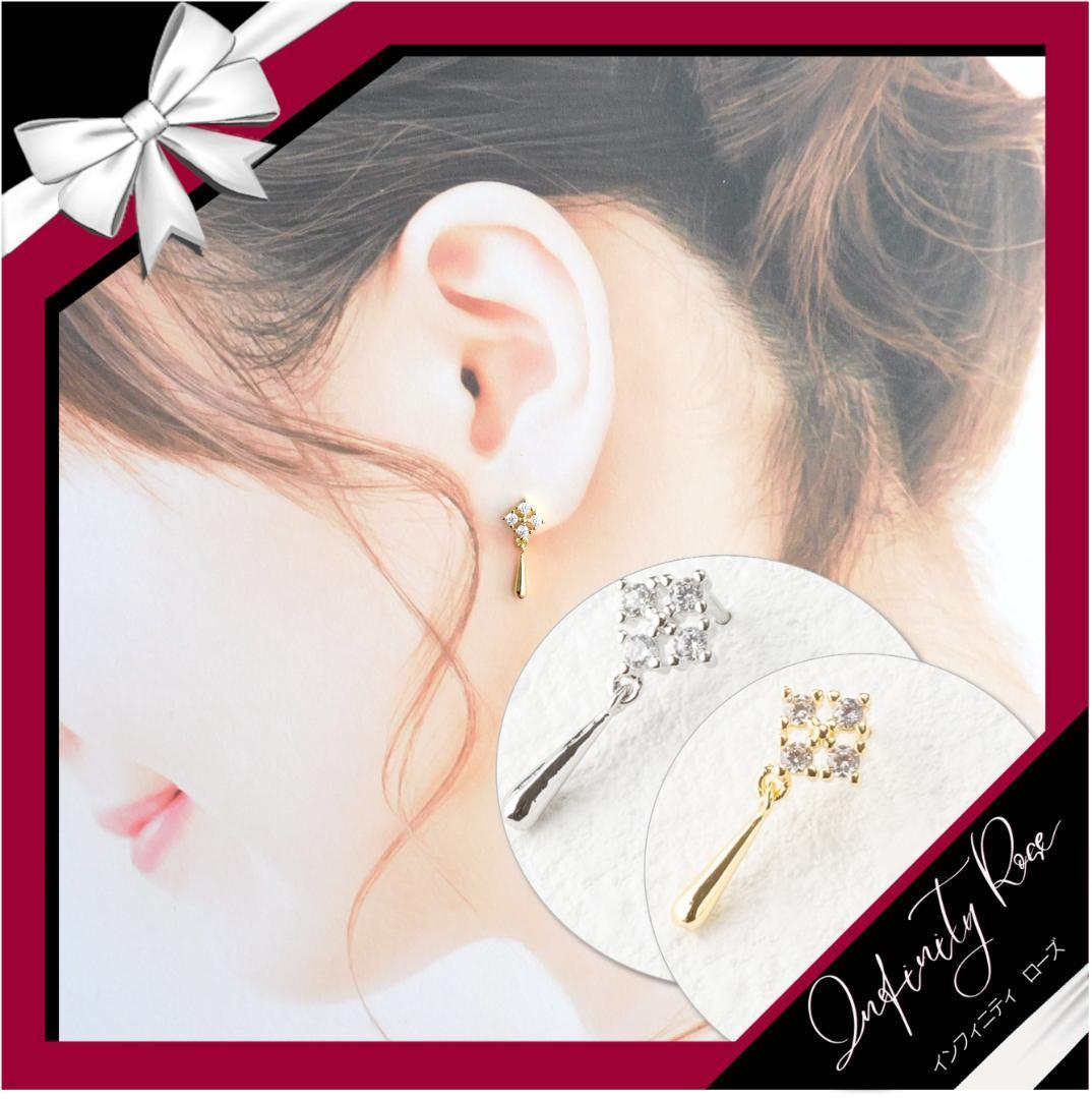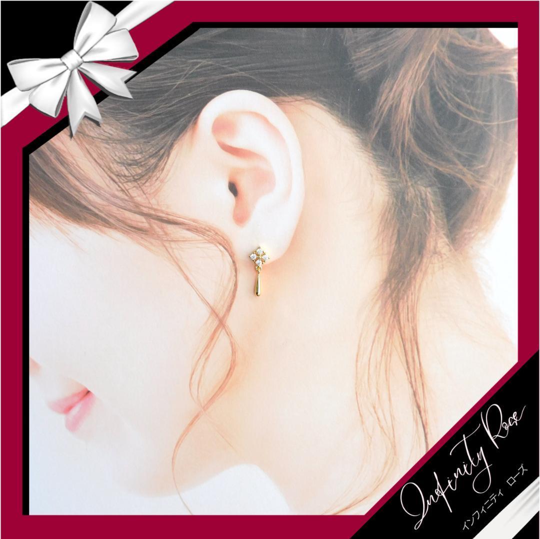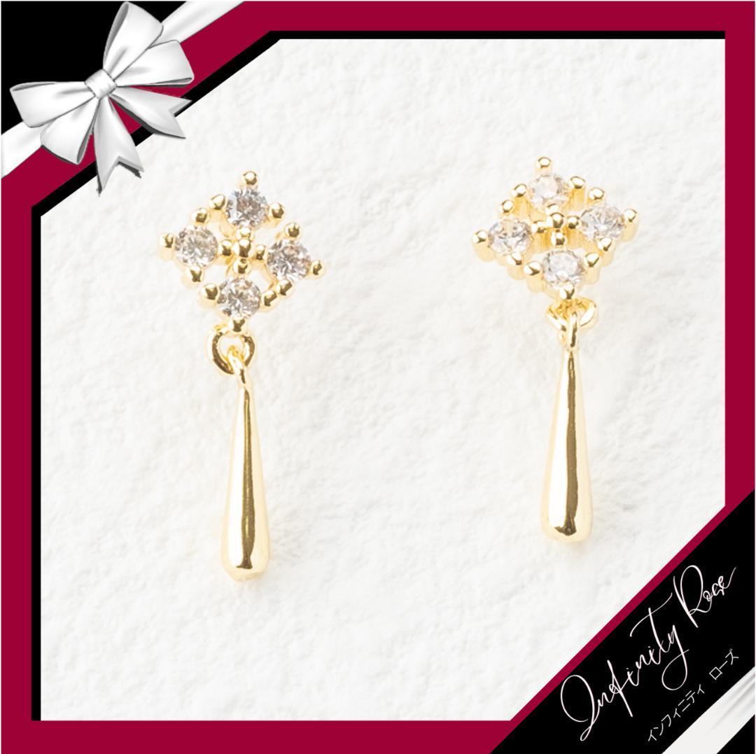 (5075)ゴールド揺れるドレスアップ 大人シックなピアス 高価爪留め スワロフスキー製クリスタル使用