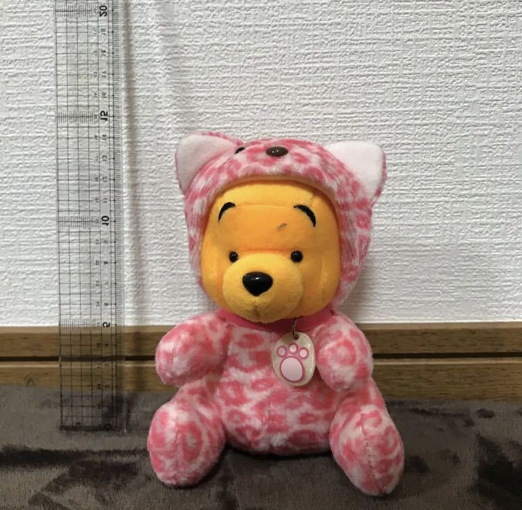 ディズニーくまのプーさんぬいぐるみプーさんピンクレオパード15×12