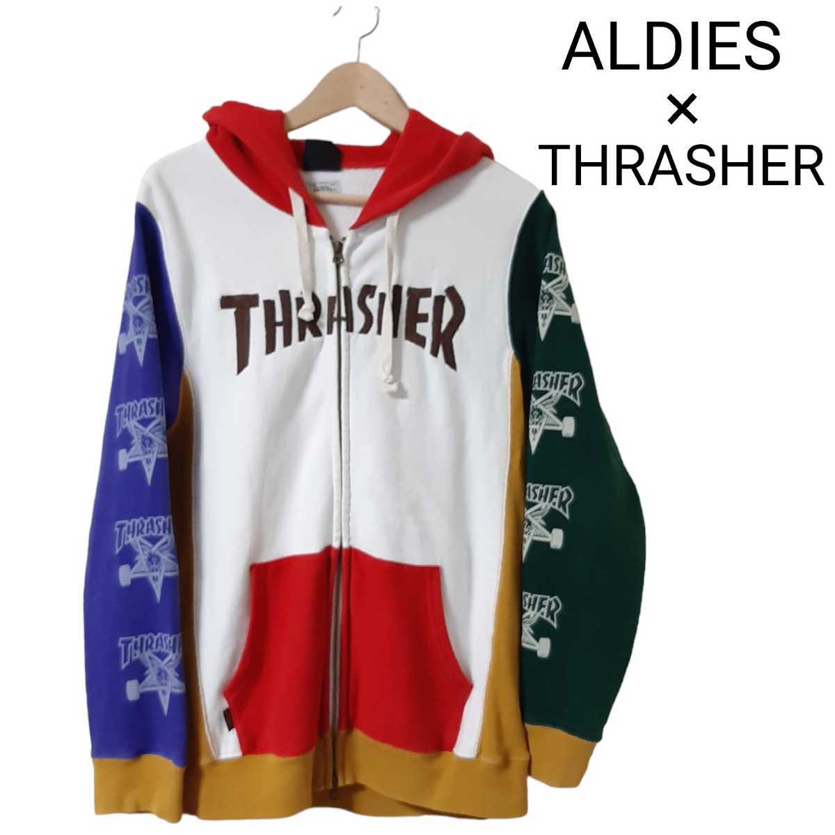 ALDIES×THRASHERのコラボジップアップパーカー。