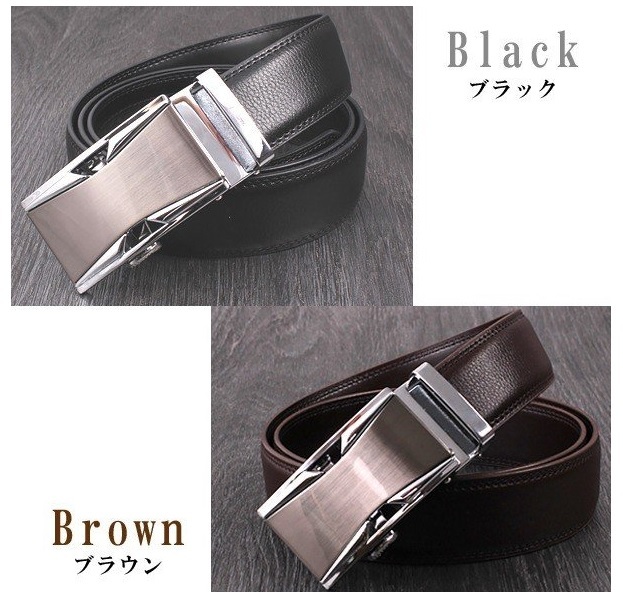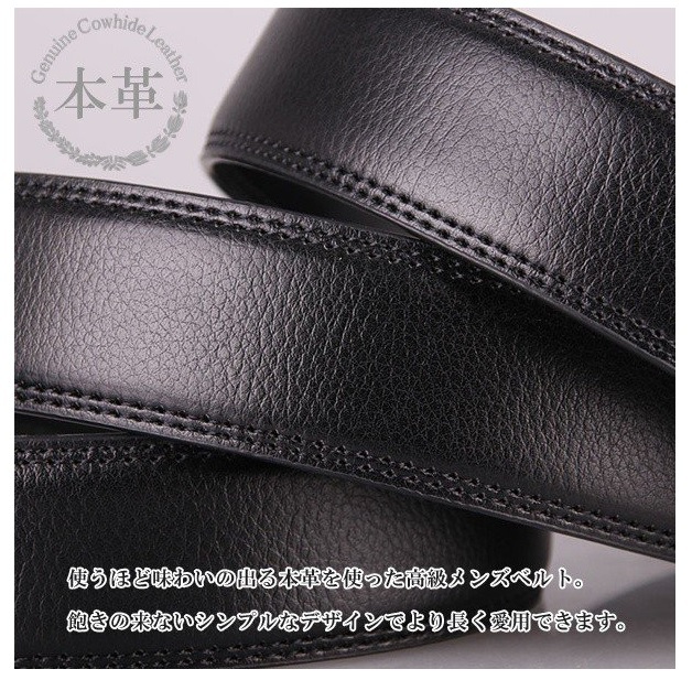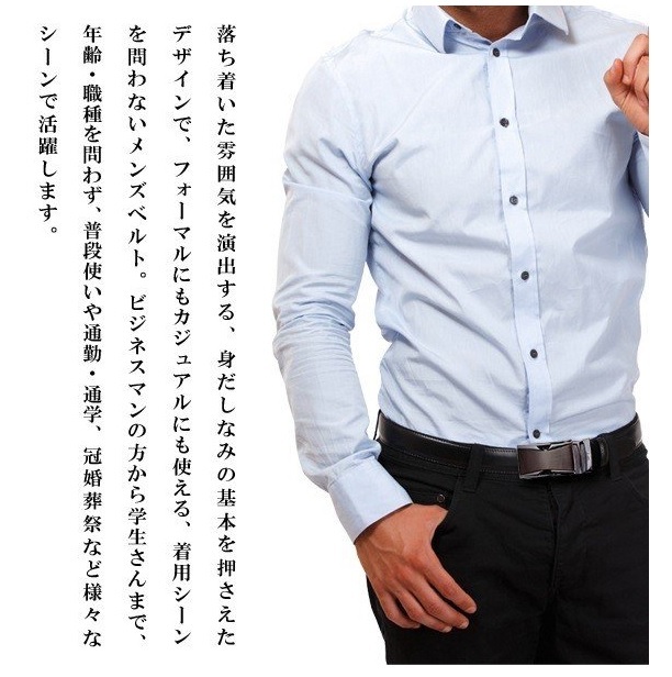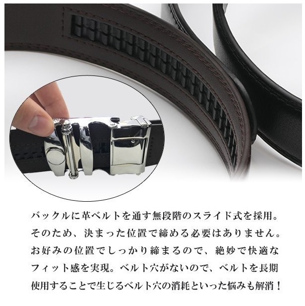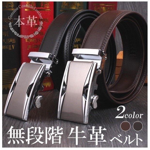 【即落送料込み】無段階調整 紳士用 牛革ベルト ブラック 対応ウエスト:102cmまで